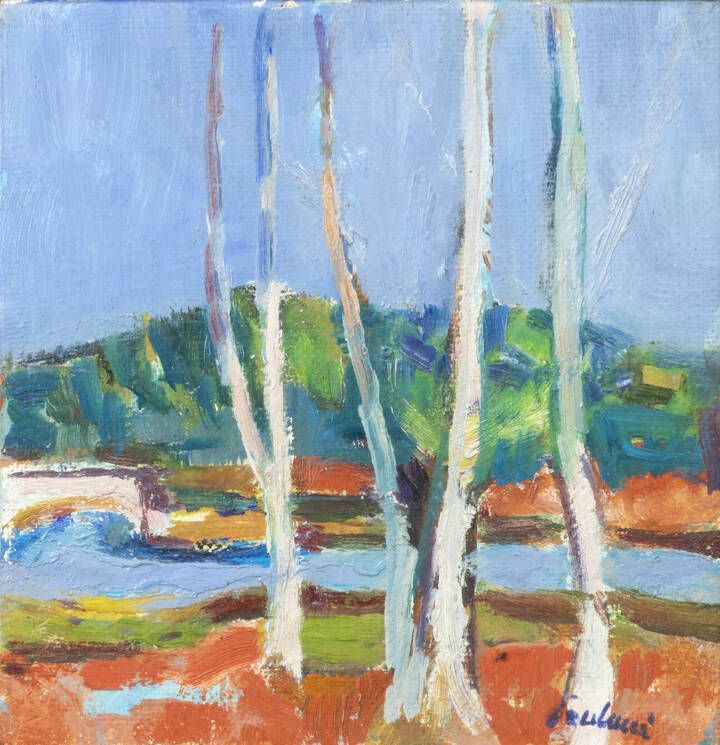 14 8x14 8 olio su tela Opera firmata in basso a destra; titolo e data al retro su carta che chiude l'opera Già Galleria Arte 15 Torino (timbro al retro su carta che chiude l'opera) Parere verbale favorevole dell'Archivio Paulucci