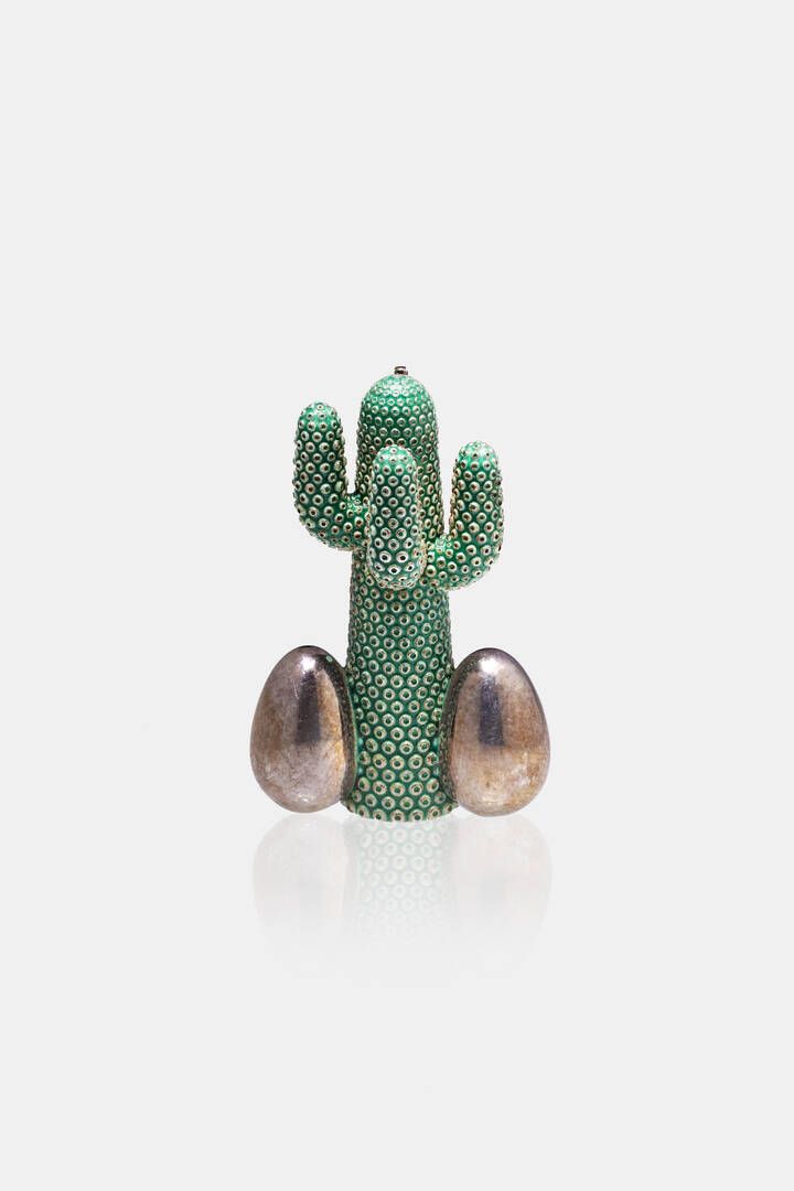 Peso gr 12 7 Cm3 2 Spilla in argento e smalto verde a forma di cactus con uova alla base. Esemplare non firmato. Provenienza: collezione Franco Mello Prototipo. Eseguito dal laboratorio dell'artigiano Mauro Bonafede