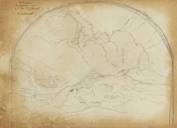 17 5x25 3 matita su cartoncino Annotazione autografa in alto a sinistra Schizzo composizione di A. Fontanesi (M. Calderini) Già Galleria Fogliato Torino (etichetta al retro) Bruniture