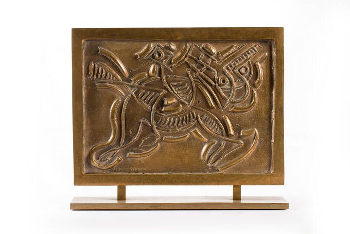 36x43 bassorilievo in bronzo in unico esemplare Opera firmata in basso a sinistra Autentica dell'artista su fotografia in data 1.5.1990