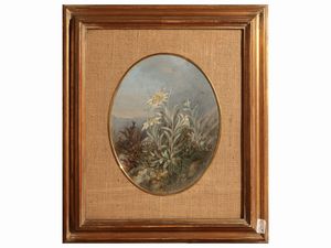 da cm 22x17 a cm 34x24 (2) Stelle alpine, olio su cartoncino in ovale, in cornice; Rose 1985, acquerello su carta, [..]