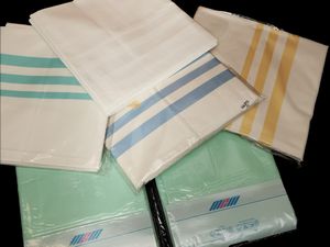 cm 290x160 (12) Tessitura Toscana Telerie fantasia a righe bordeaux su fondo color corda, ciascuno con due lenzuola [..]