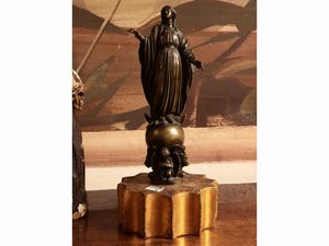 h cm 30 XX secolo scultura in bronzo, riproducente la statua che si trova sulla sommità della Colonna dell'Immacolata [..]