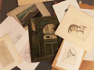 da cm 15x20 cm 40x30 (38) XX secolo lotto composto da disegni e piccoli dipinti di autori vari