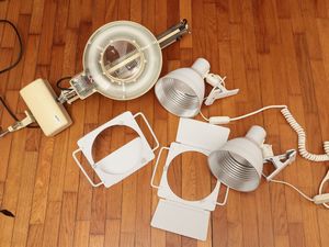 con morsetto, funzionante, abbinata a e due faretti Targetti