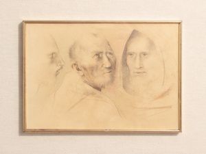 da cm 12x16 a cm 31,5x26,5 (2) XX secolo composto da un bozzetto a matita, Studio di volti, in cornice; Studio [..]