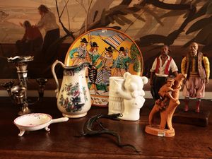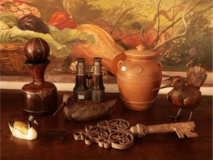 h da cm 6 a cm 27 (7) tra cui tre gruppi raffiguranti beccacce, un binocolo in parte rivestito in cuoio ed una [..]