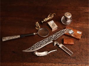 XIX/XX secolo tra cui due sigilli in ottone modellati come animali, un calamaio in argento e cristallo smaltato [..]