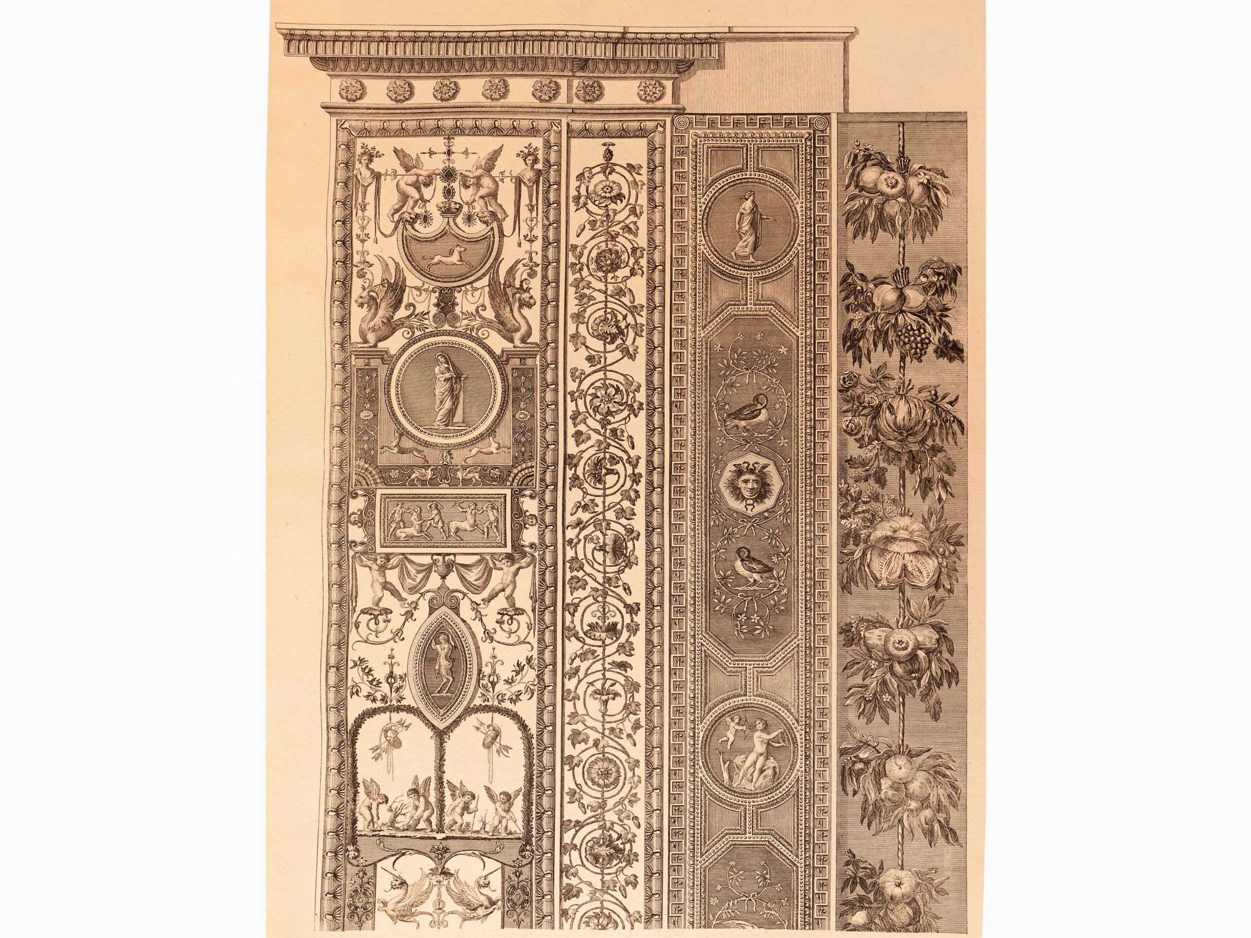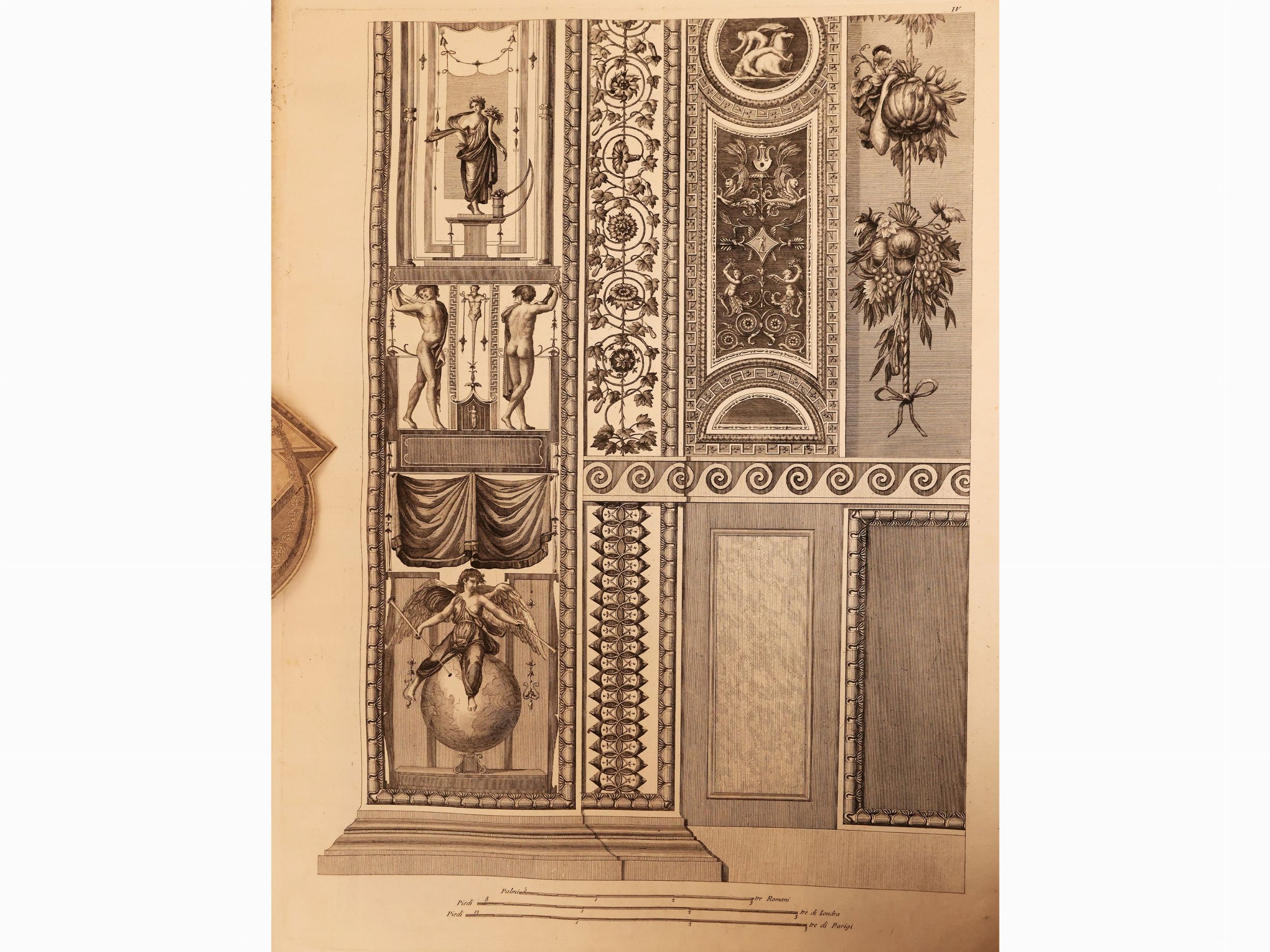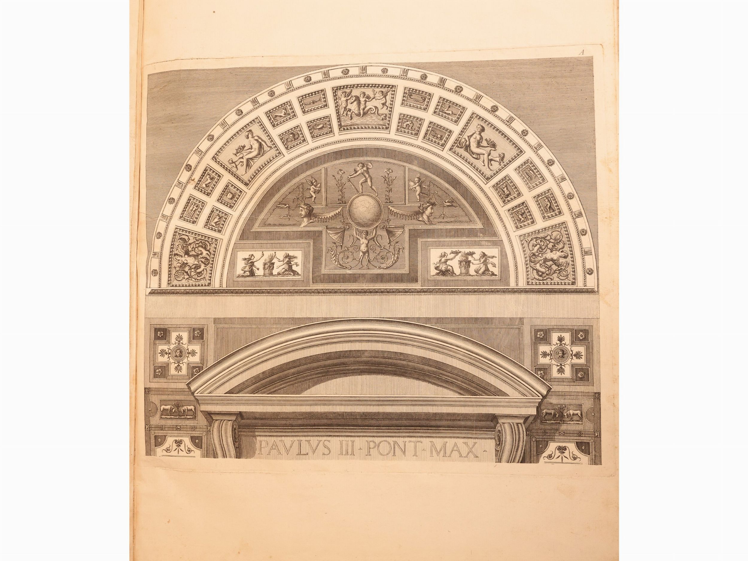 Roma: Pagliarini Marco, 1772-1777, cm 62x44,5. 2 parti (su 3) in 1 volume: 62 c. complessive. Parte I. 16 tavole a doppia matrice + 1 tavola del frontespizio + 1 tavola a tripla matrice (36 c.) Parte II. 13 tavole a doppia matrice (26 c.) Acquaforte e bulino