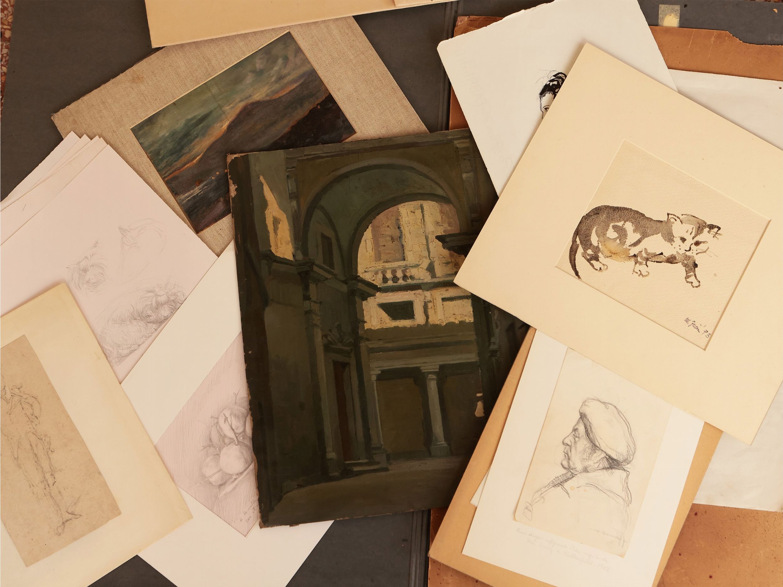 XX secolo lotto composto da disegni e piccoli dipinti di autori vari