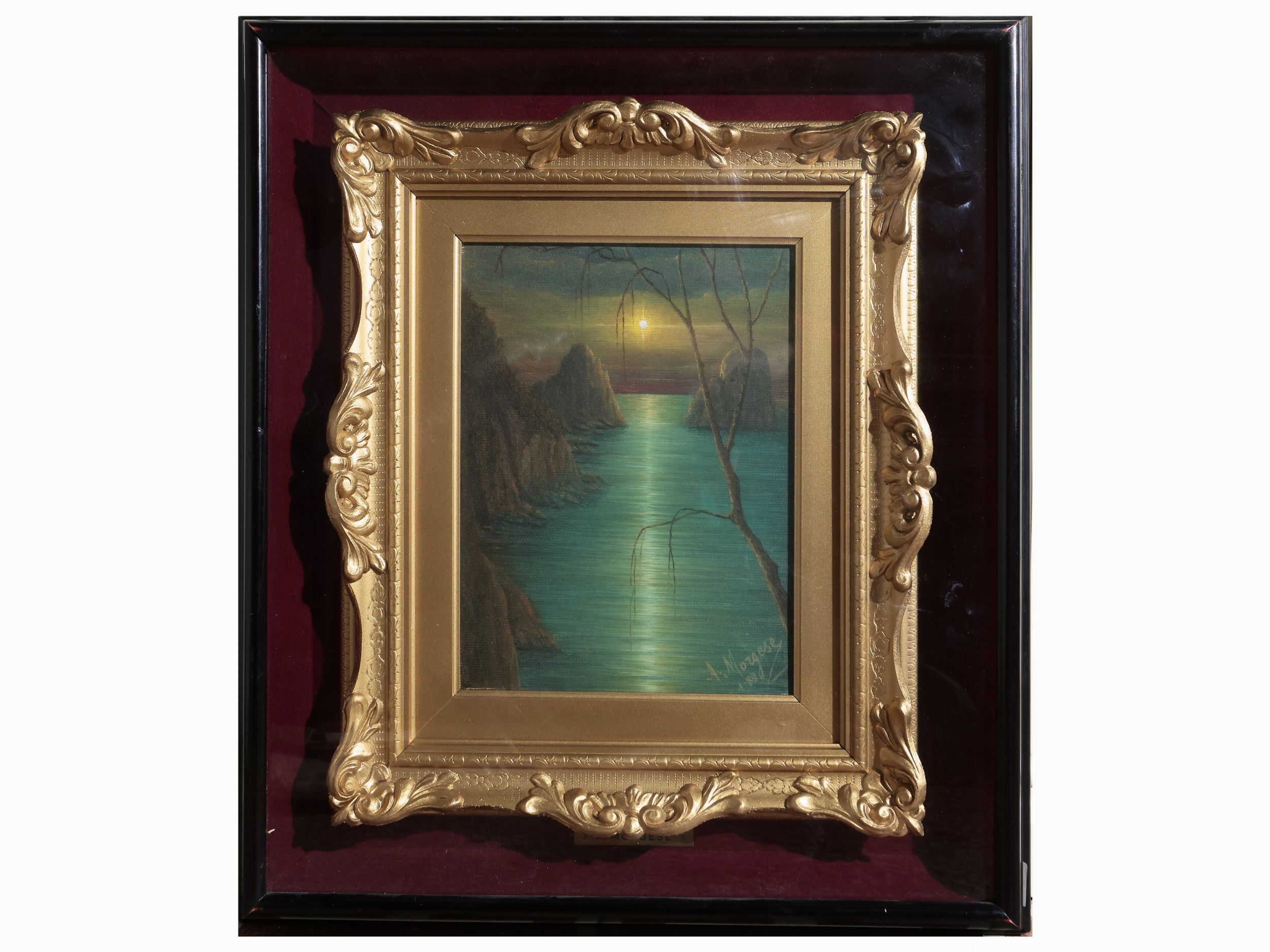 XX secolo olio su tela, datato e firmato e dedicato al verso Antonio Morghen, in cornice