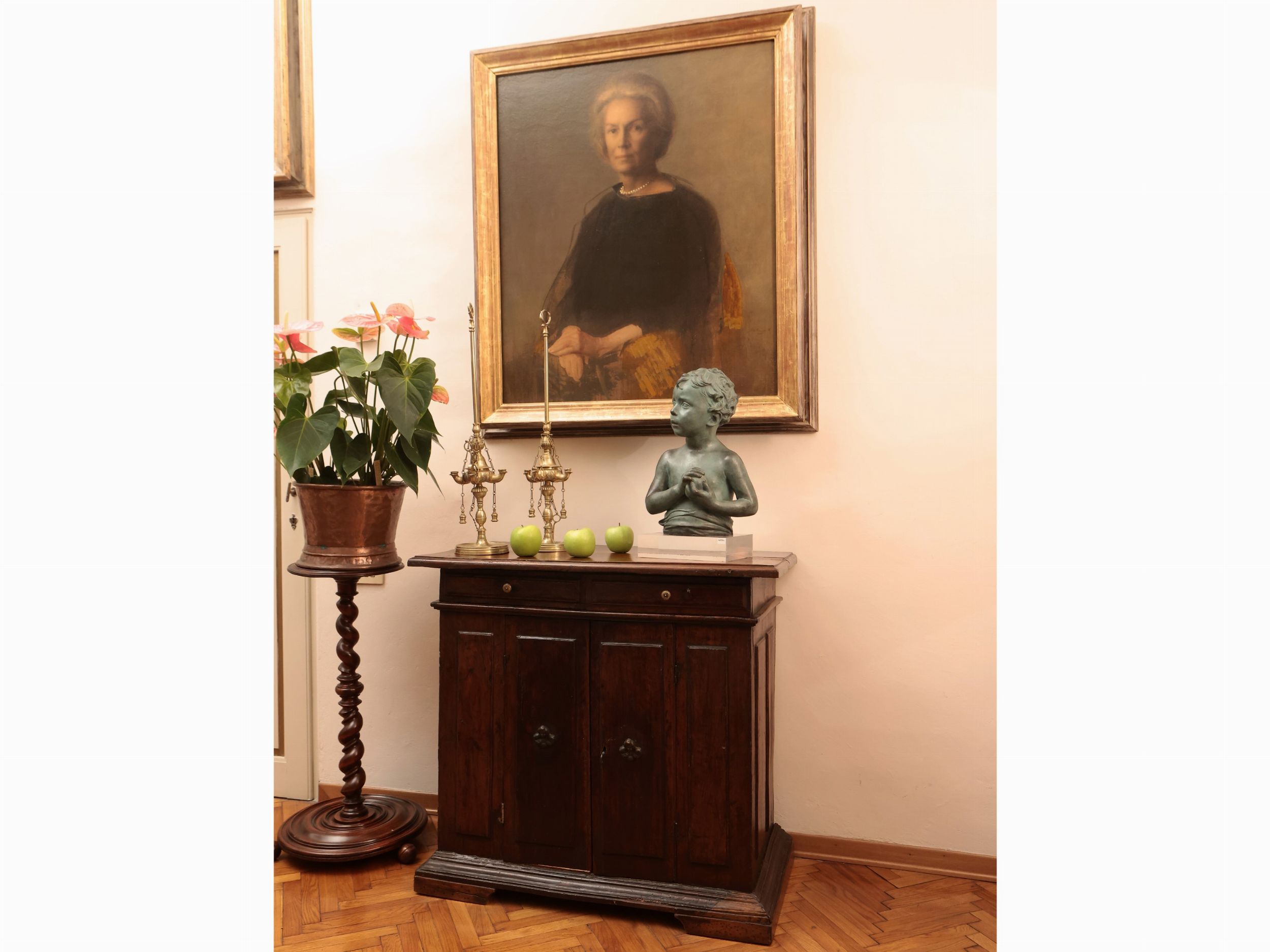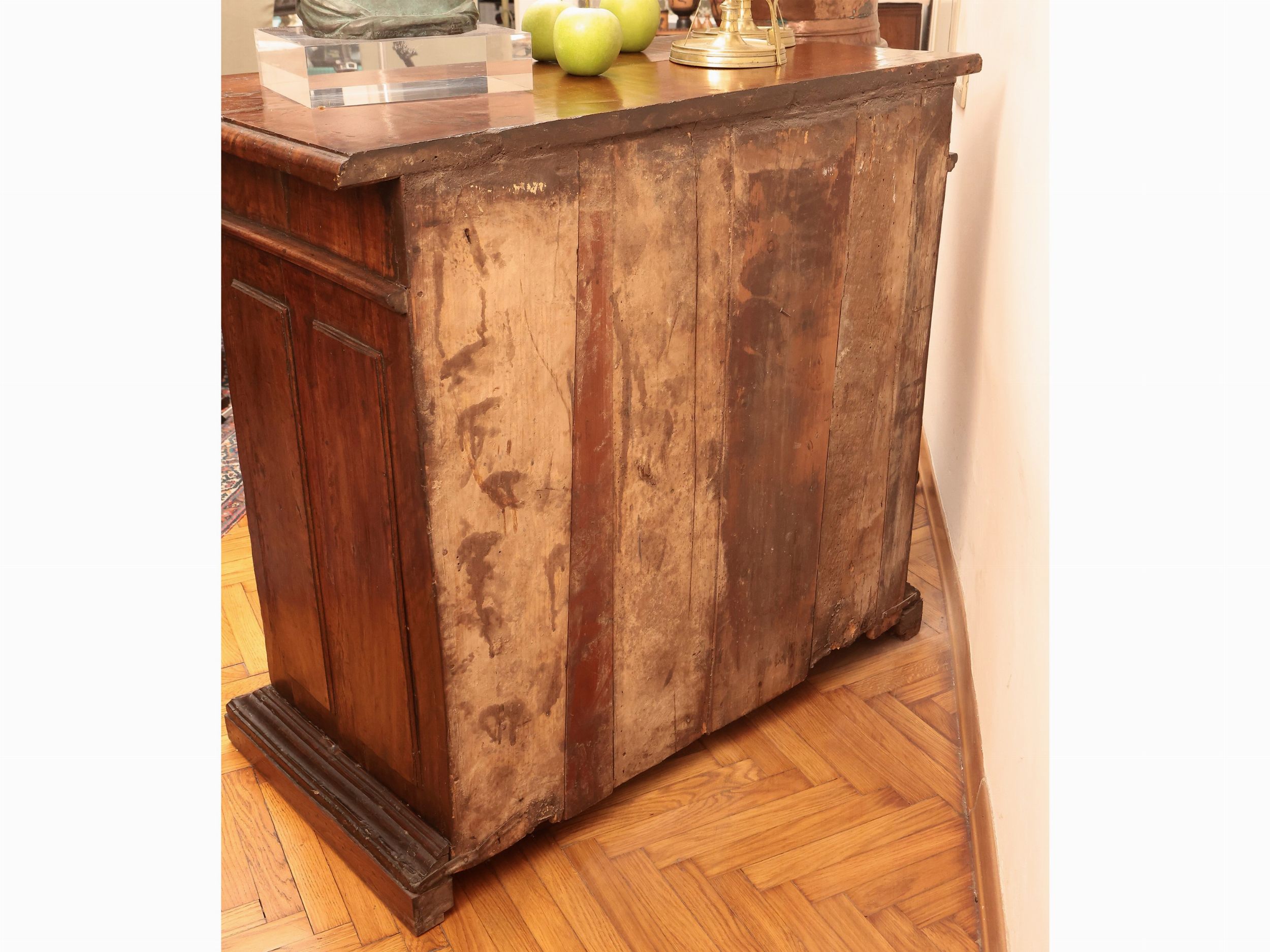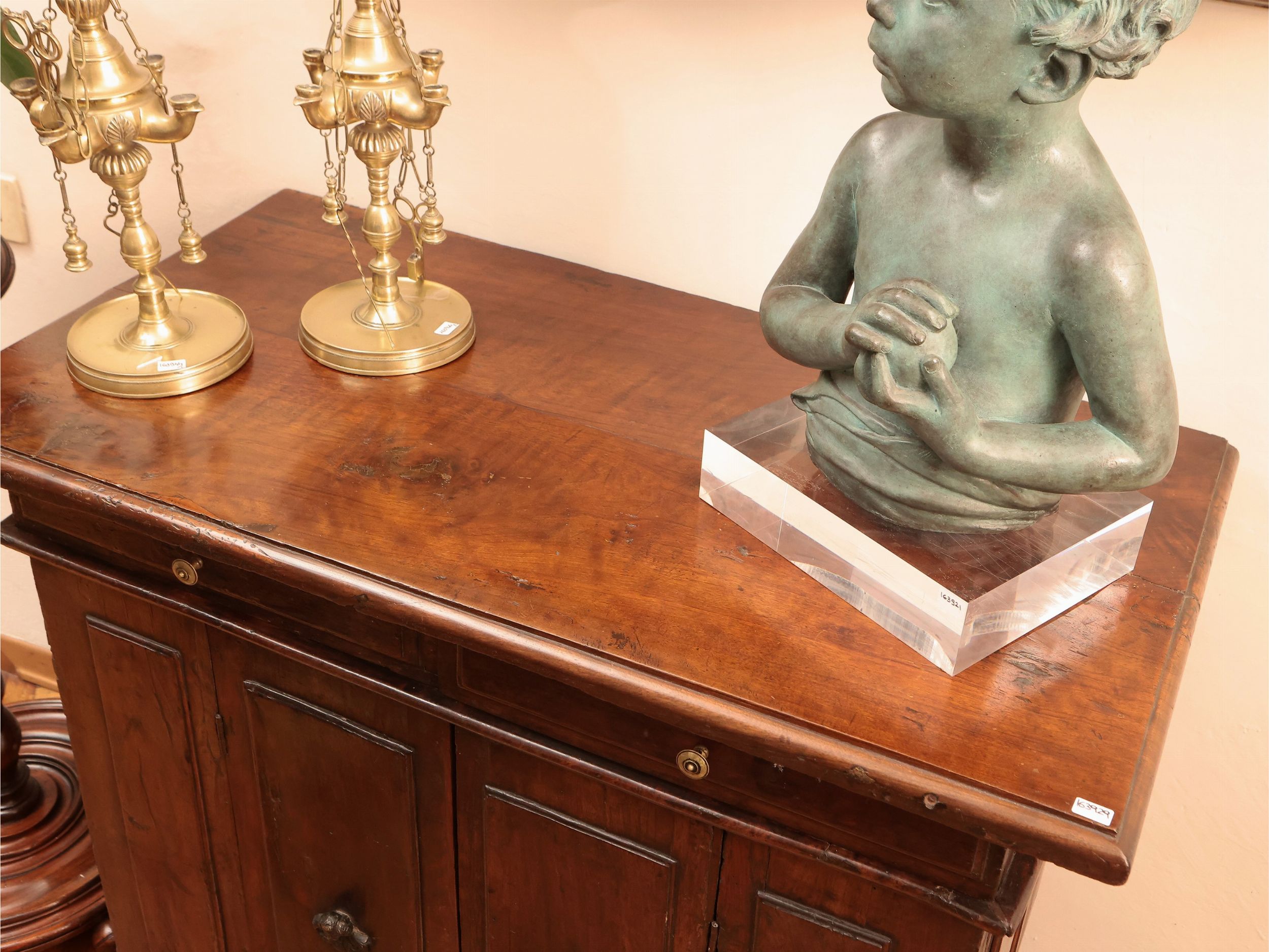 XVII secolo due sportelli con maniglie in bronzo sul fronte a formelle, piedi a mensola