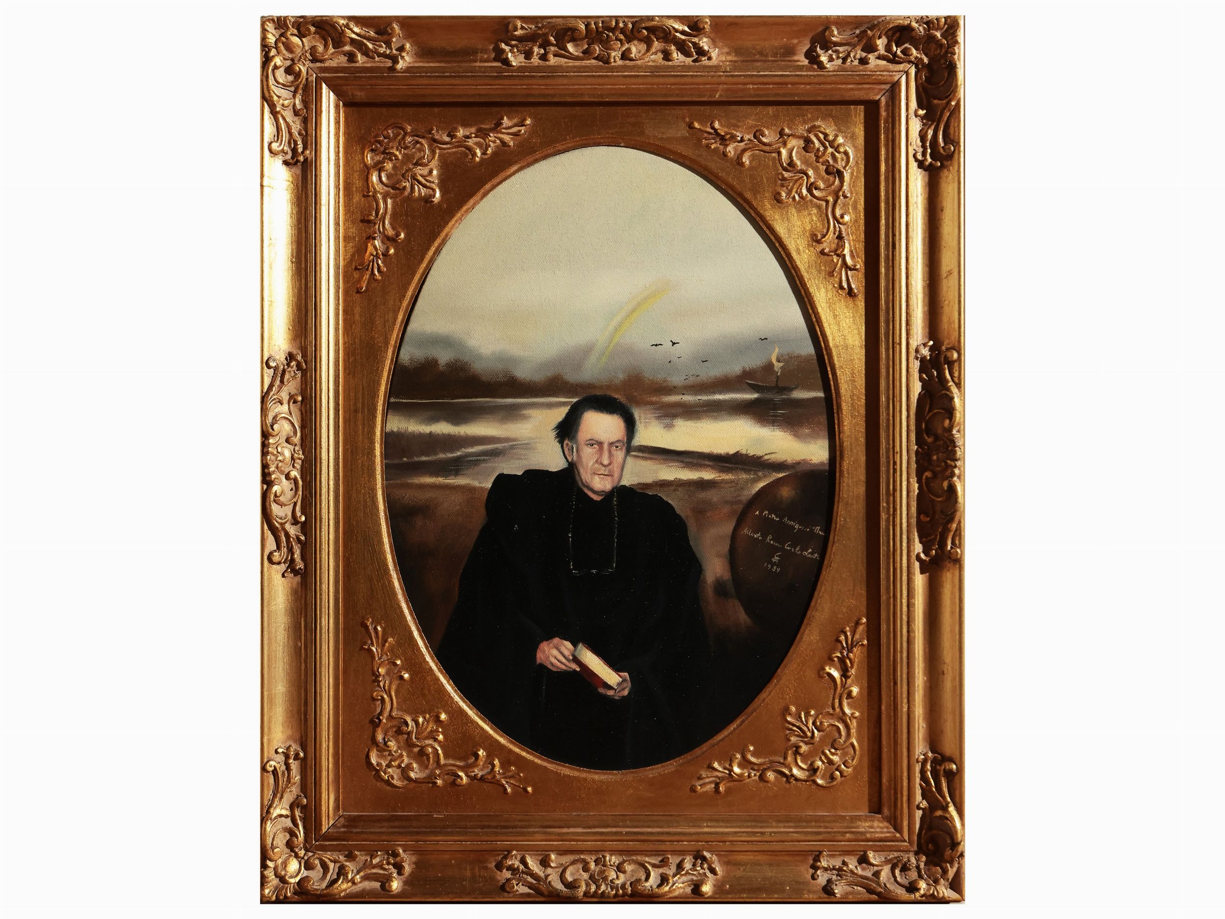 XX secolo olio su tela in ovale, datato, firmato e dedicato, firmato e dedicato al verso, in cornice