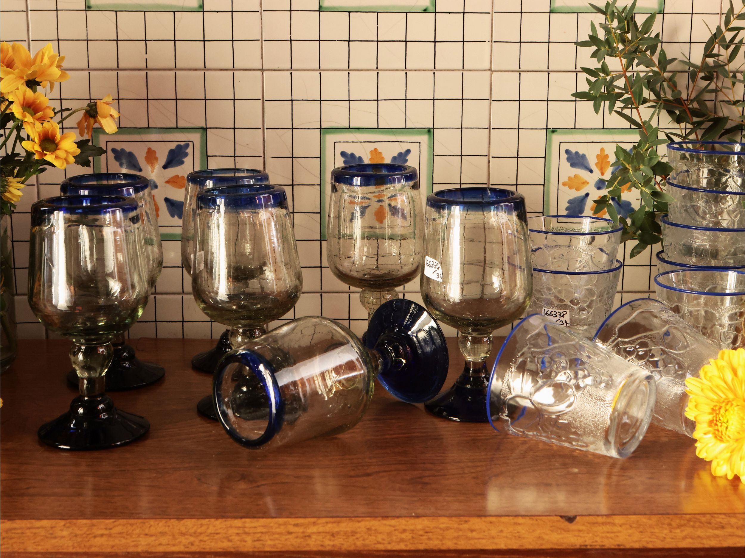 Serie di ventidue calici in vetro spesso