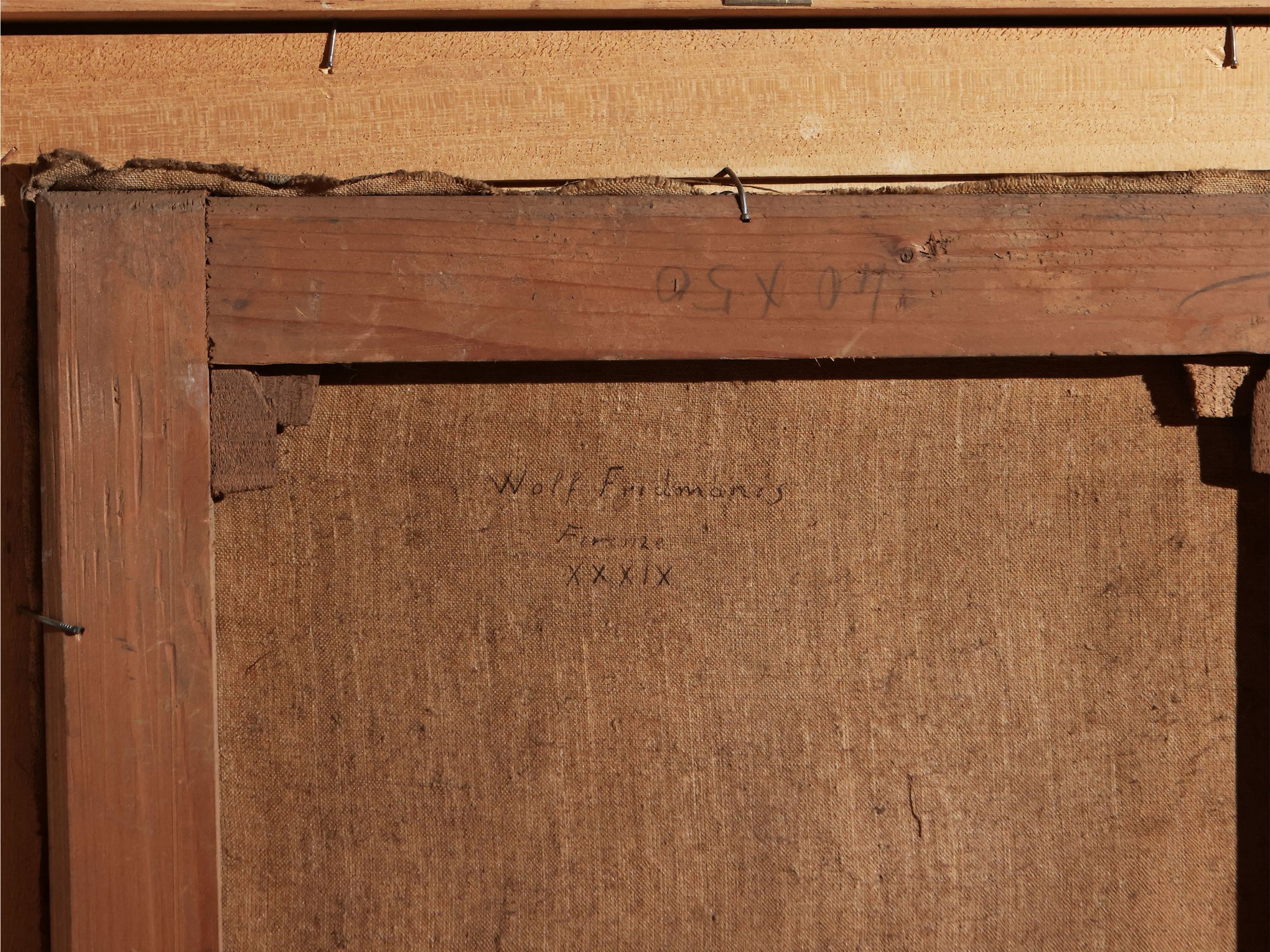 Fridmanis Wolf , Natura morta con uccelli impagliati 1939, olio su tela, datato e firmato al verso, in cornice; Silvio Polloni (1888-1972) Natura morta 1959, olio su tavoletta, datato e firmato, in cornice; Paesaggio, olio su cartone, firma e iscrizioni non leggibili, in cornice