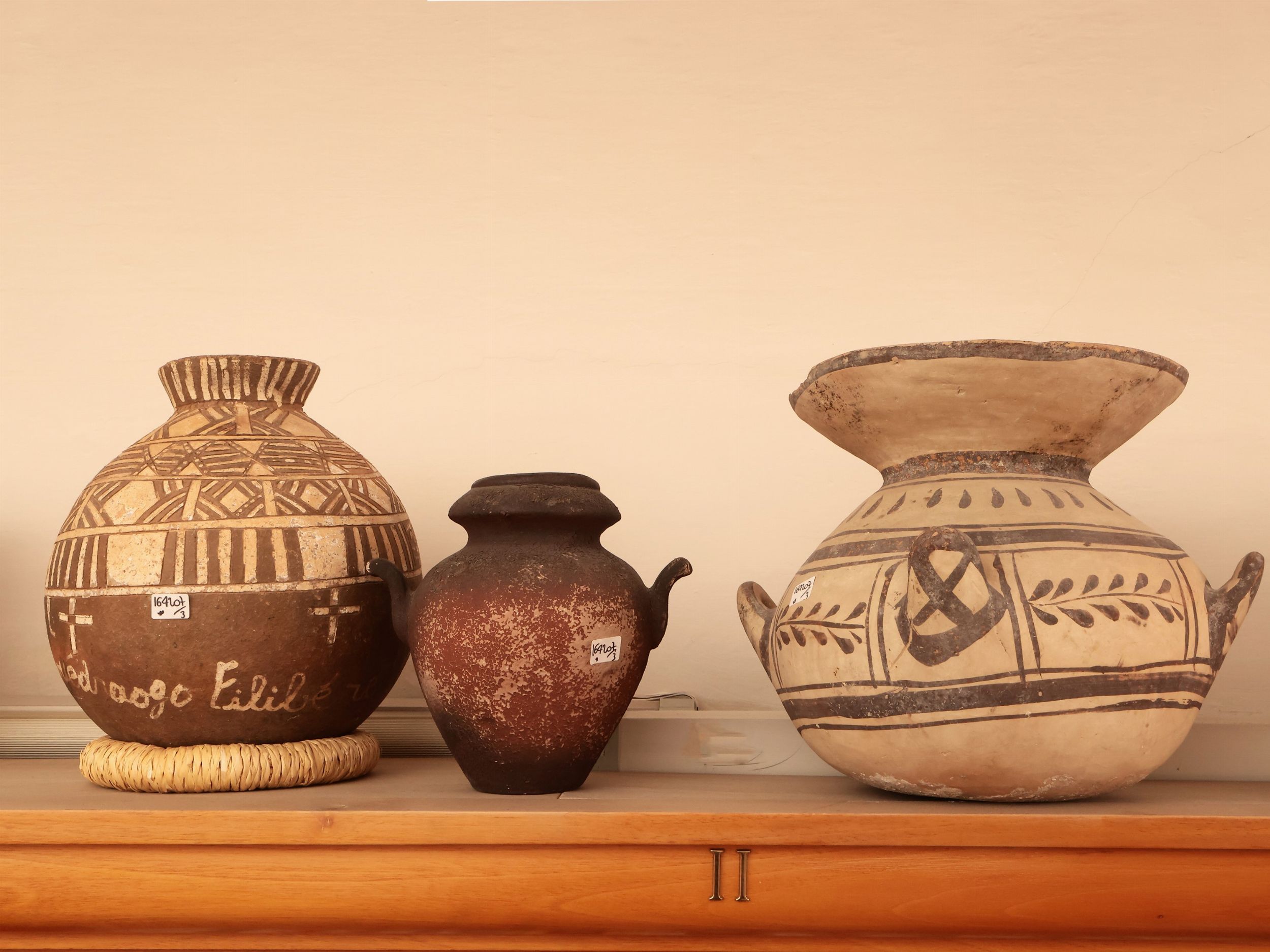 Tre vasi tribali in terracotta