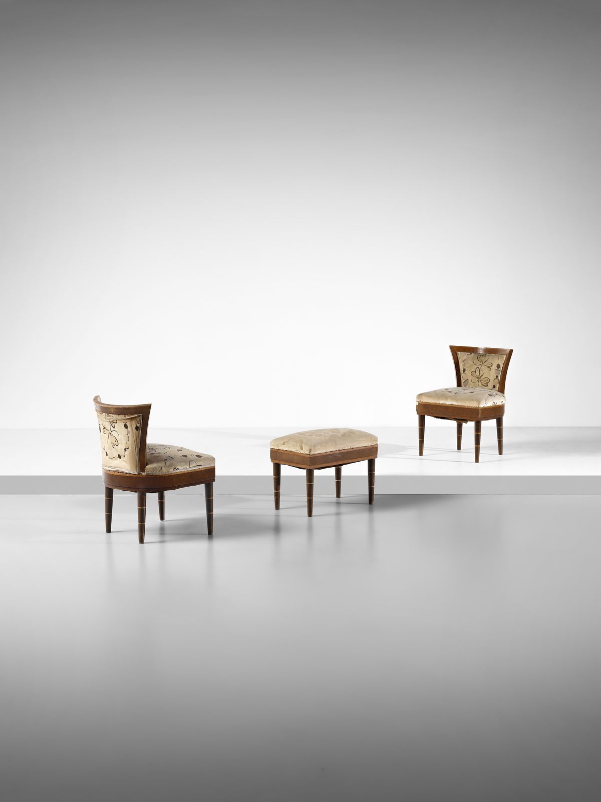 attribuito. Coppia di poltroncine da camera con poggiapiedi probabile esecuzione [..]