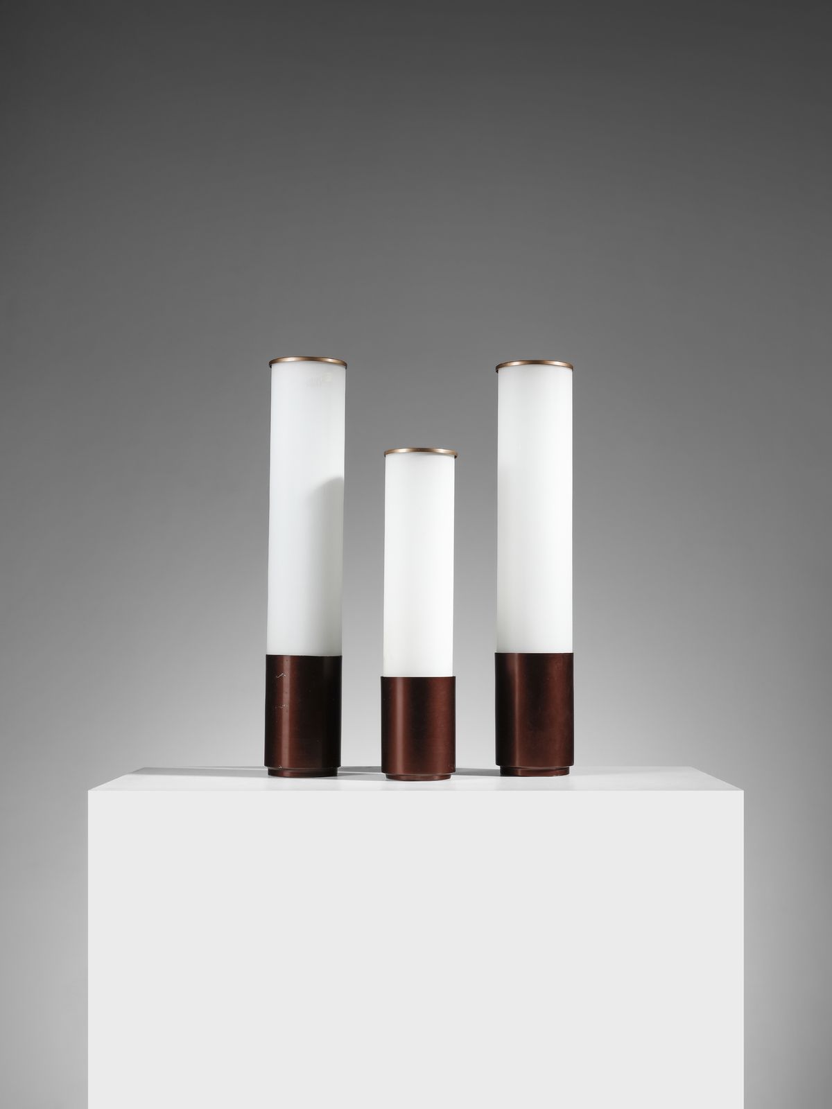 Dimensioni: 46,5 x 10,5 x 10,5 cm. 60,5 x 11,5 x 11,5 cmBibliografia: Catalogo Fontana Arte n. 3, 1968, s.p.