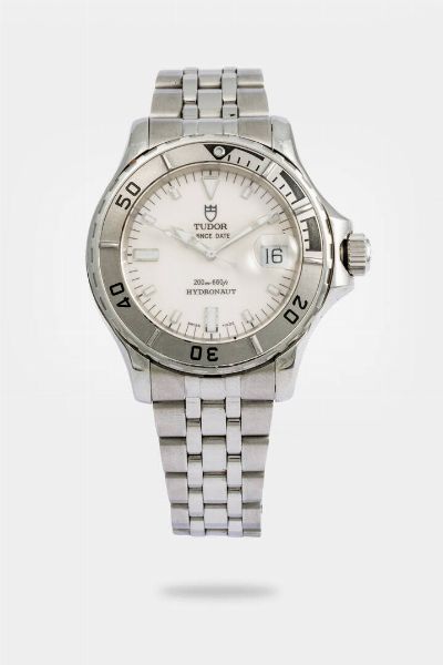 Diam. 41 mm Cassa in acciaio con fondello a vite e lunetta girevole. Raro quadrante color panna con indici geometrici applicati e datario al 3. Bracciale in acciaio integrato con chiusura clasp. Movimento a carica automatica. Orologio in perfetto stato di conservazione recante garanzia card originale.