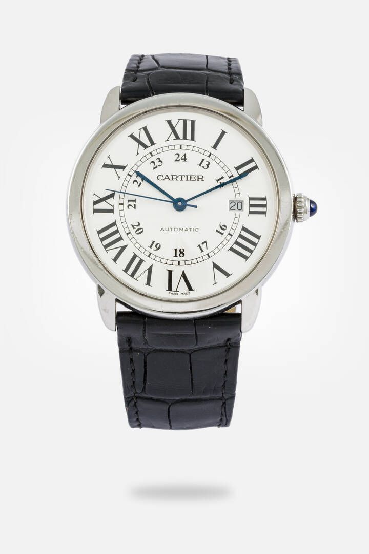 Diam. 42 mm Cassa in acciaio di grandi dimensioni ultrasottile con fondello avvitato. Quadrante argento con numeri romani serigrafati e datario al 3. Bracciale in pelle con chiusura clasp. Movimento a carica automatica.