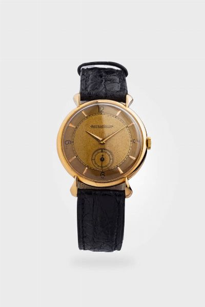 Diam. 32 mm Cassa oro rosa con fondello a pressione ed anse a goccia. Quadrante nei toni dell'ocra-salmone con indici geometrici applicati ed indicazione dei secondi continui al 6. Movimento a carica manuale. Orologio di grande rarità.