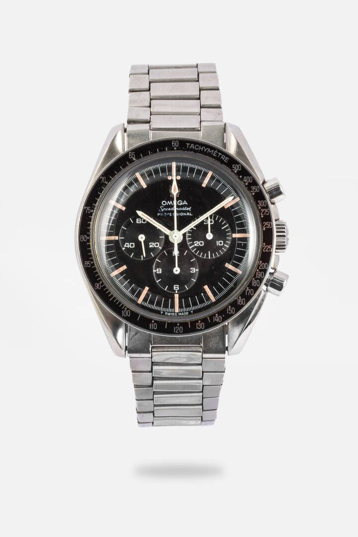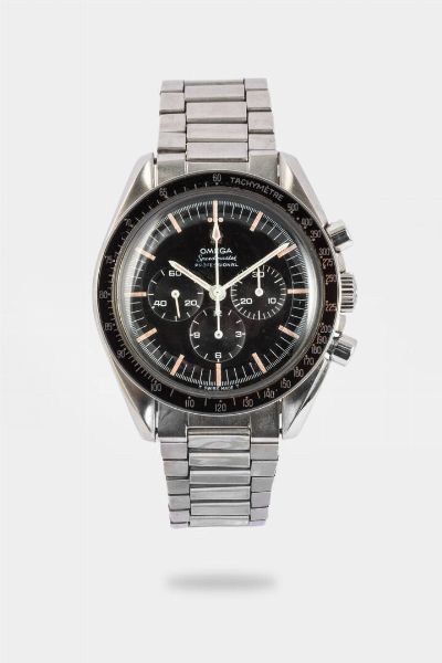 Diam. 42 mm Cassa in acciaio con tasti della cronografia a pompa e vetro platica. Quadrante nero con indici luminescenti patinati; contatori dei secondi al 9 ore al 6 30 minuti al 3. Bracciale in acciaio con chiusura clasp. Ref. 1039 Fondello a vite con ippocampo. Movimento a carica manuale cal. 321. Estratto degli archivi completo e box. Fondello service.
