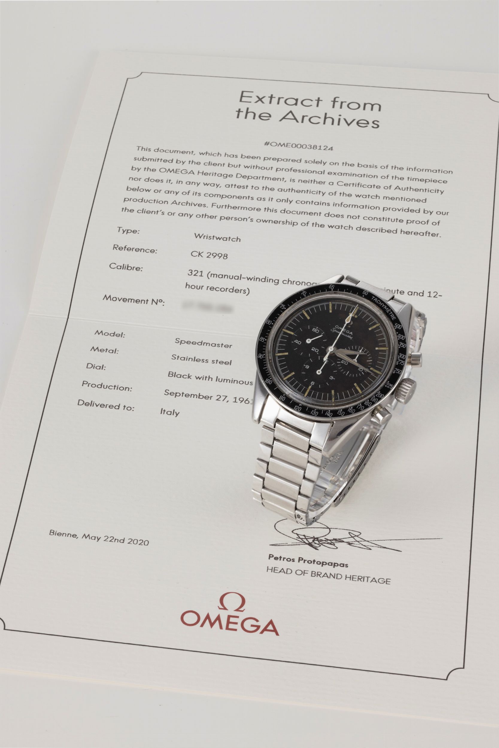 Raro Omega Speedmaster, ref.2998-4, 1961