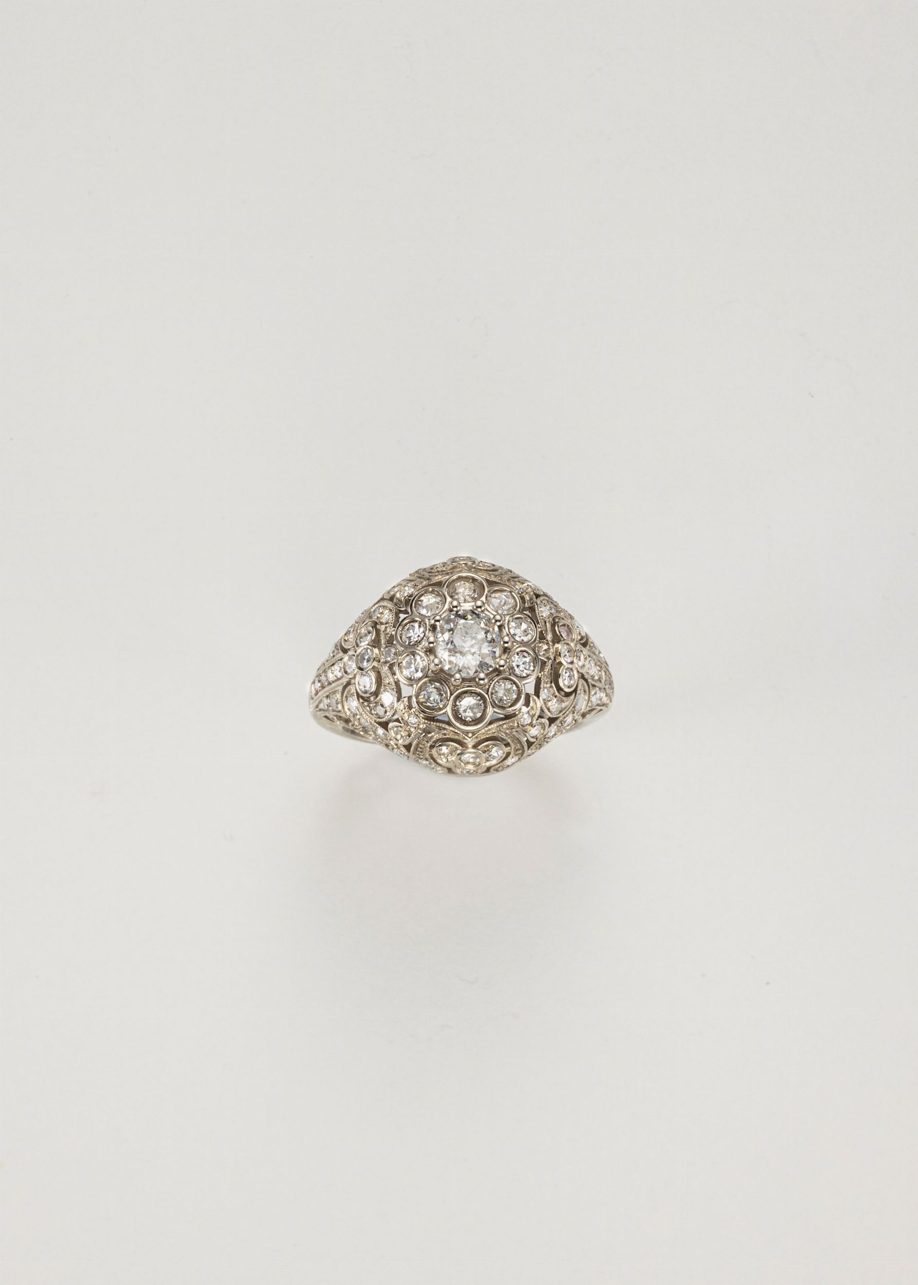 Anello a cupola in oro bianco con diamanti