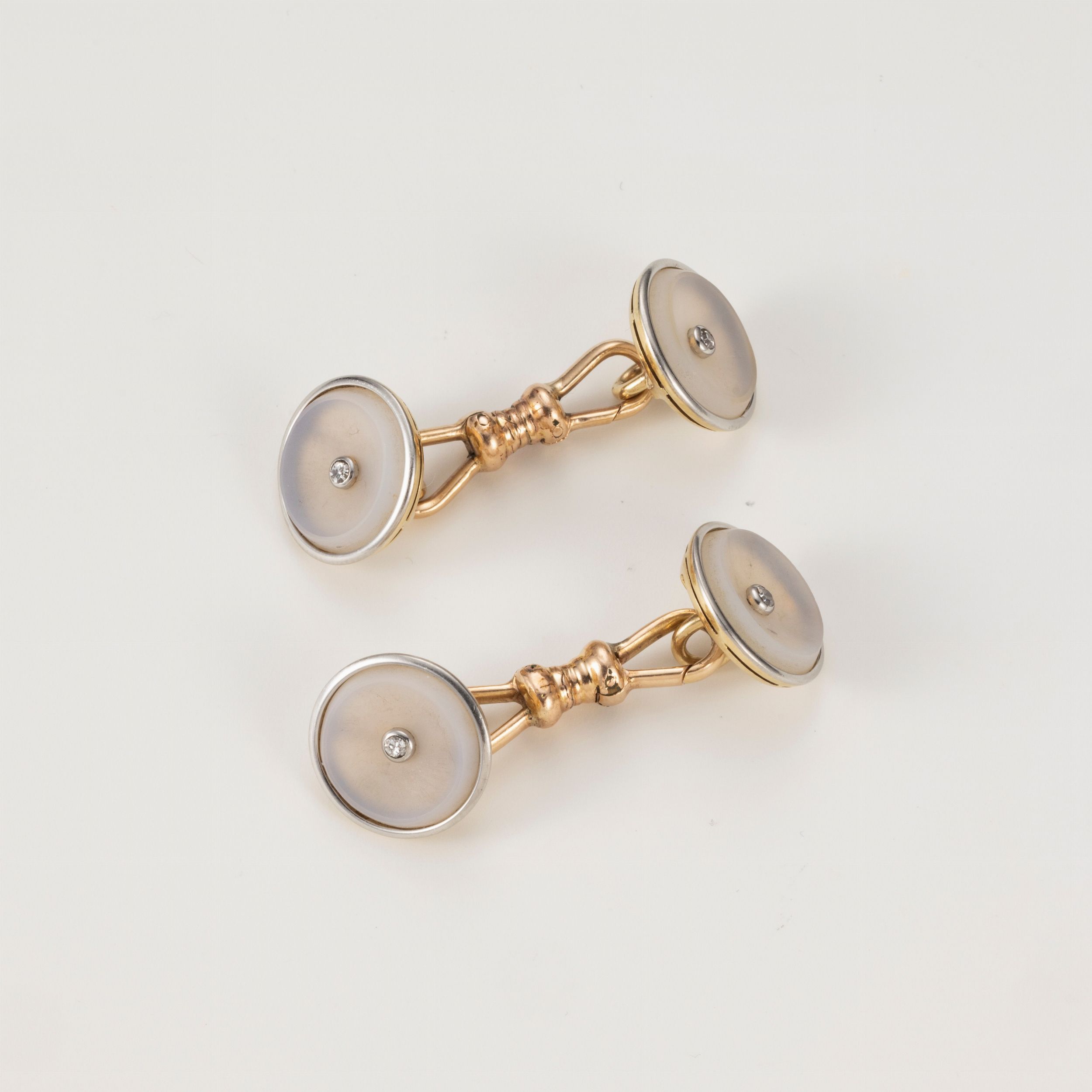 Gemelli in oro con cristallo di rocca satinato e piccoli diamanti
