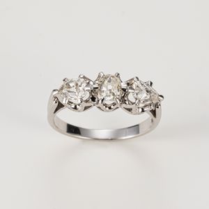 Anello Trilogy in oro bianco con diamanti vecchio taglio
