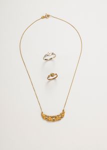 Collana in oro giallo 18 kt; anello in oro bianco 18 kt con perla; anello in oro a bassa caratura con turchese; [..]
