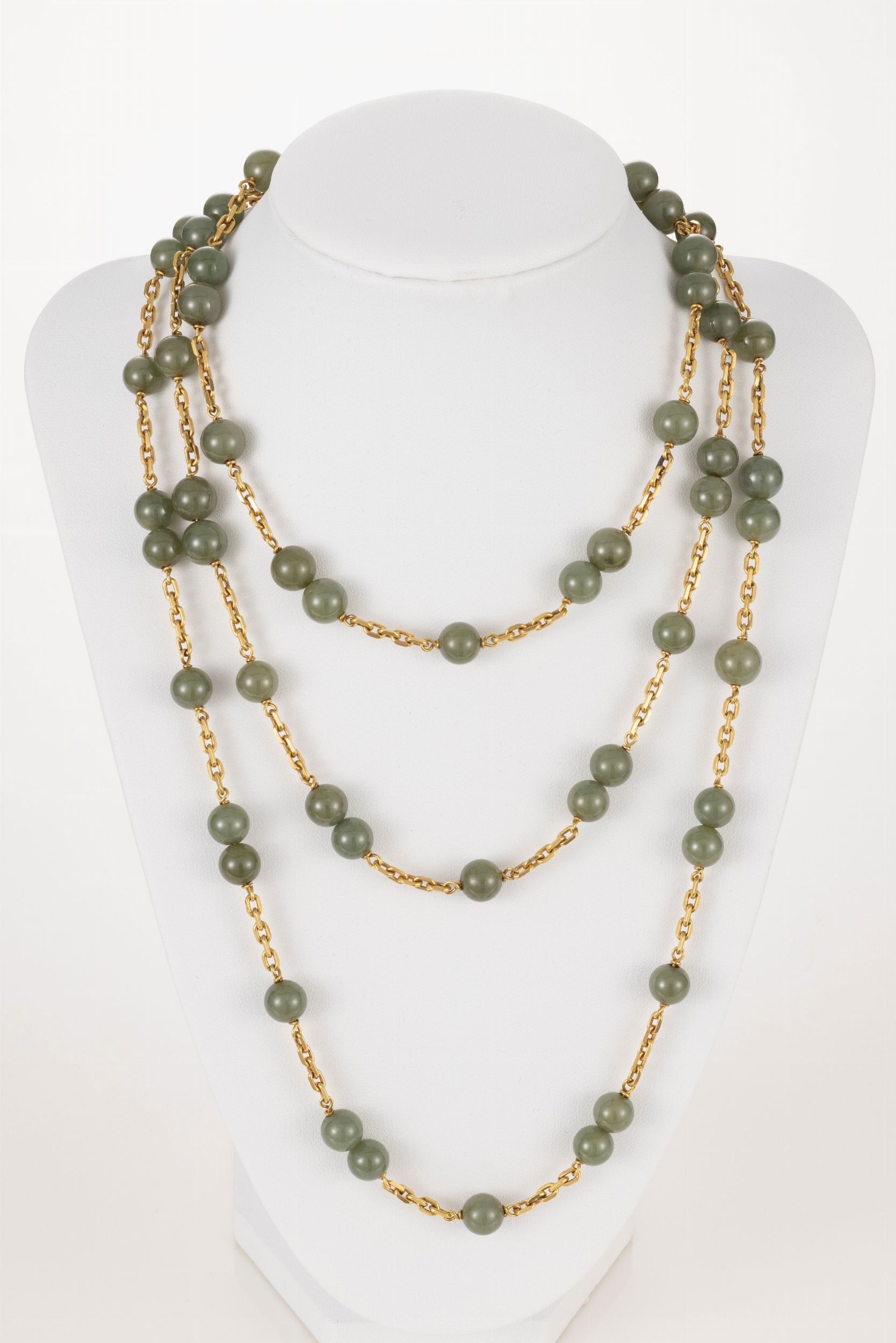Collana alternata da sfere di diaspro verde, oro 18 kt, lunghezza cm 120, diaspro verde mm 8,5 ø.