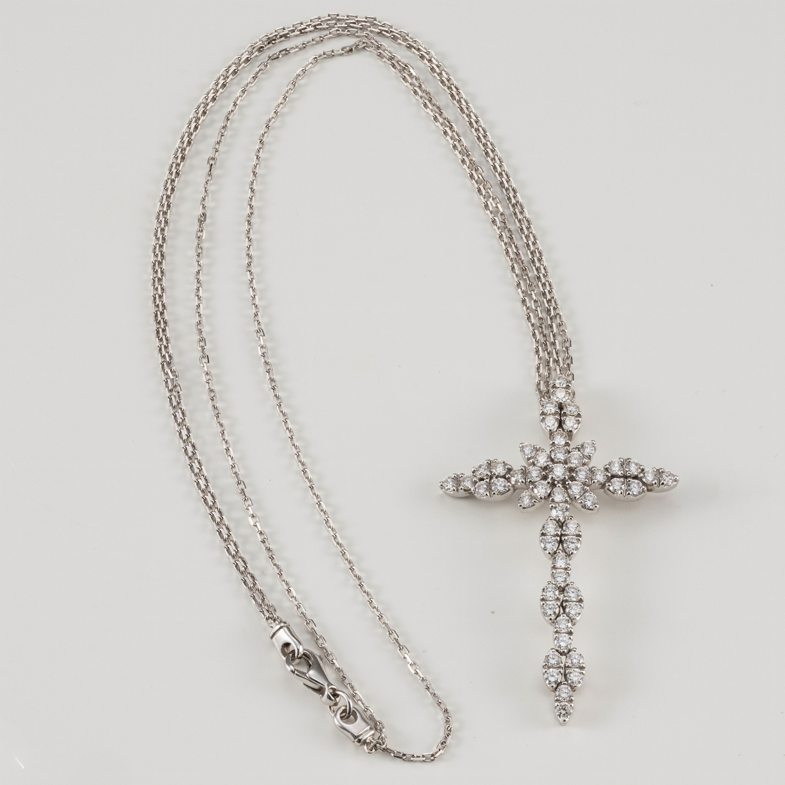 Pendente a croce in oro bianco e diamanti taglio brillante
