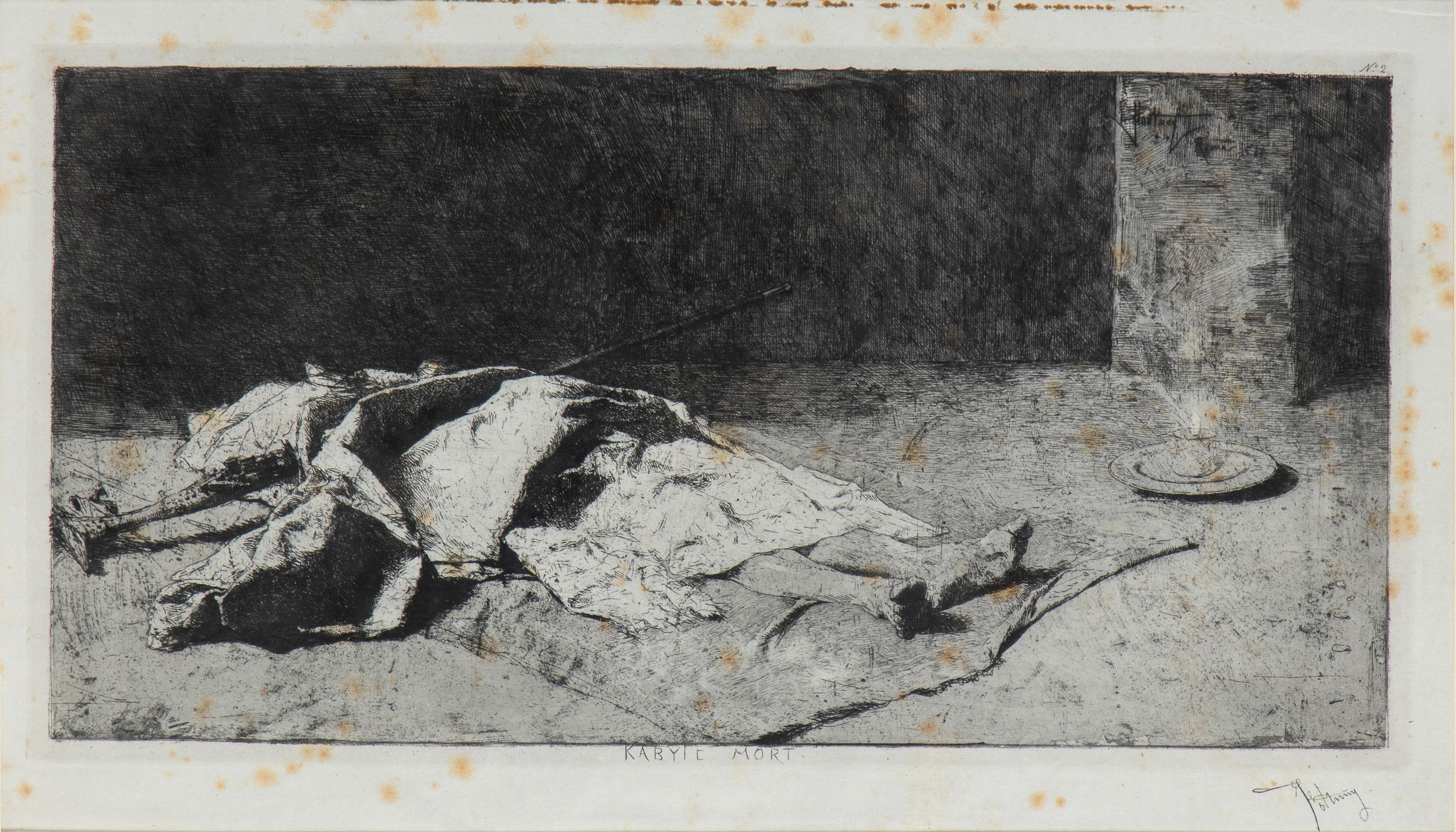 Firmato in basso a destra: M. Fortuny, titolato al centro: Kabyic mort