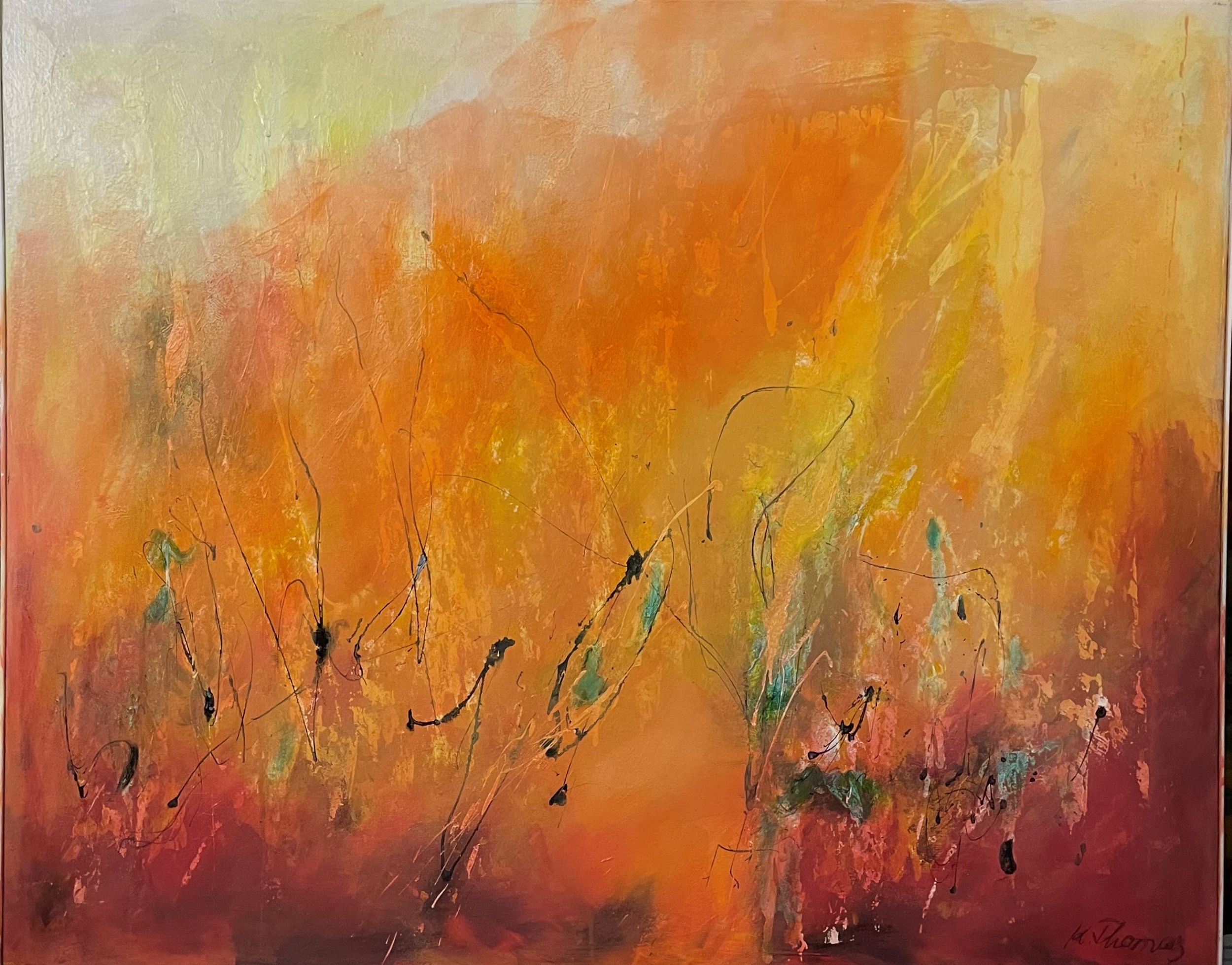 Olio su tela, cm. 120x150 2023 Karen Thomas utilizza una molteplicità di tecniche e materiali per esplorare le sfaccettature poliedriche della condizione umana. La sua opera è caratterizzata da una fusione di astrazione e figurazione, riflettendo le esperienze personali e l'osservazione del mondo che ci circonda. Thomas ha sviluppato un linguaggio distintivo, ispirato alla natura e alle interazioni sociali. La sua ricerca artistica si concentra sulla resa delle emozioni e dei ricordi, utilizzando il colore e la forma per evocare sensazioni e coinvolgere lo spettatore in un dialogo continuo con l'opera. Il lotto non sarà visibile in esposizione. Per ogni informazione sulle condizioni scrivere a: p.aloisio@bertolamifineart.com