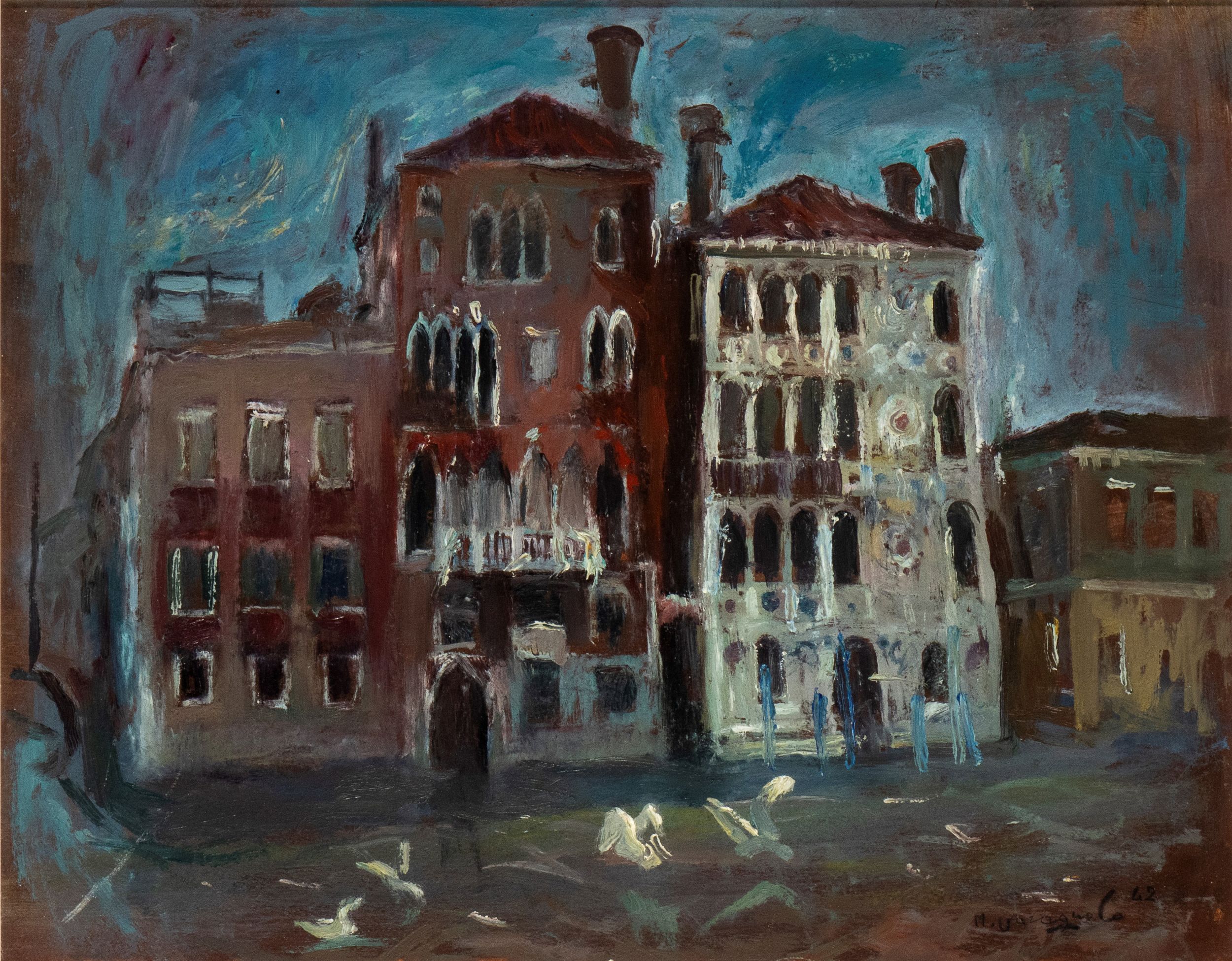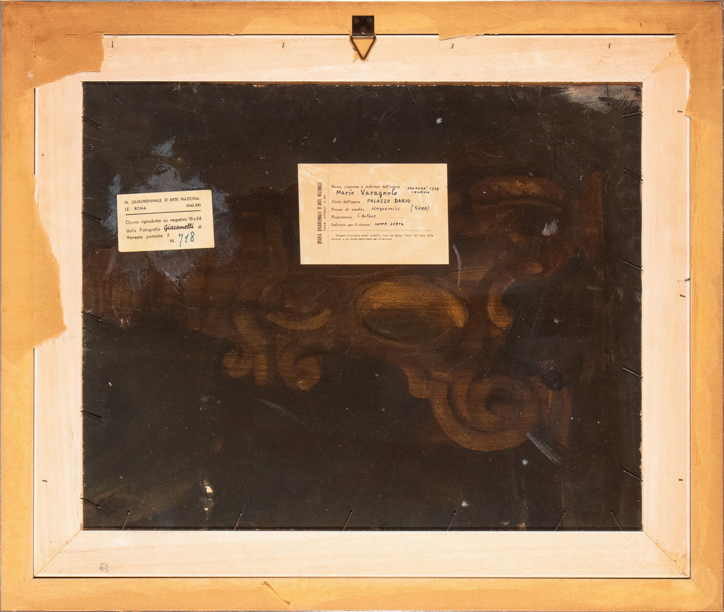 1942 Firmato e datato in basso a destra: M. Varagnolo 42. Al retro due etichette della Quarta Quadriennale d'Arte Nazionale, Roma, 1943