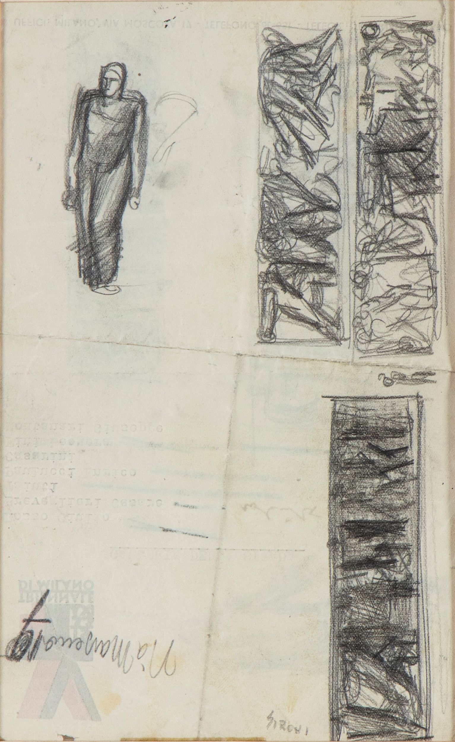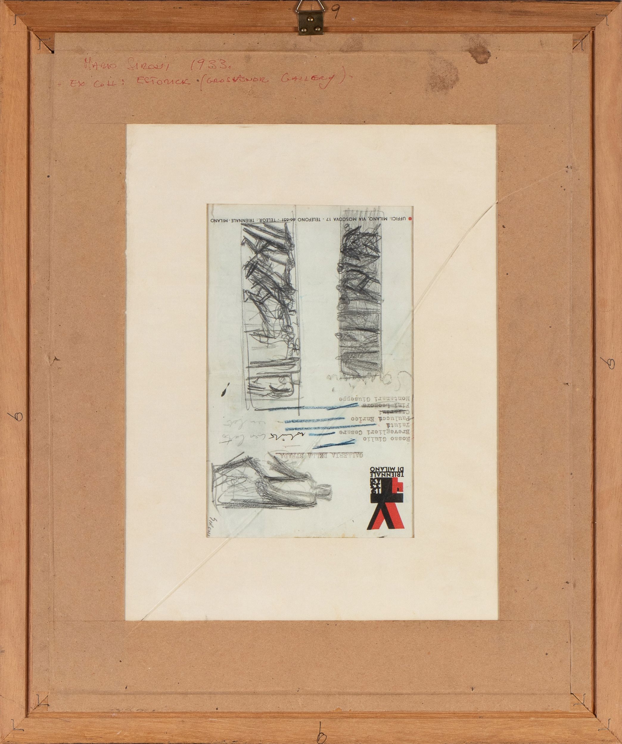 Firmato in basso a destra: Sironi. Al retro timbro della Triennale di Milano e firma in alto a destra: Sironi