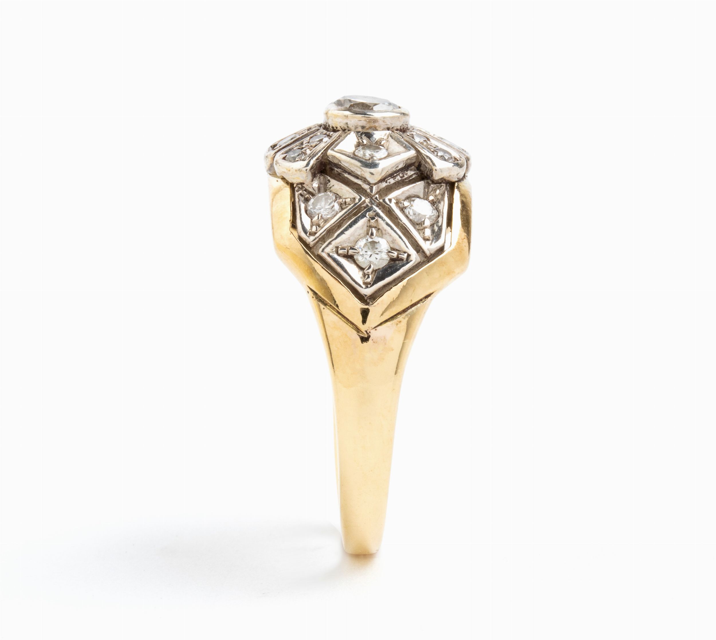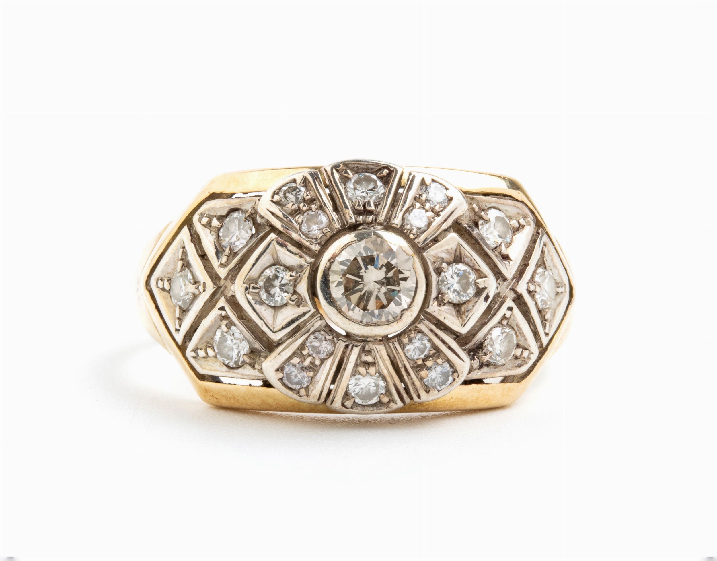 con motivo floreale in diamanti rotondi, taglio brillante, circa 0.40 ct, H.I, VS-SI. Misura ITA 22 - Misura USA 10. Peso 6,7 gr.