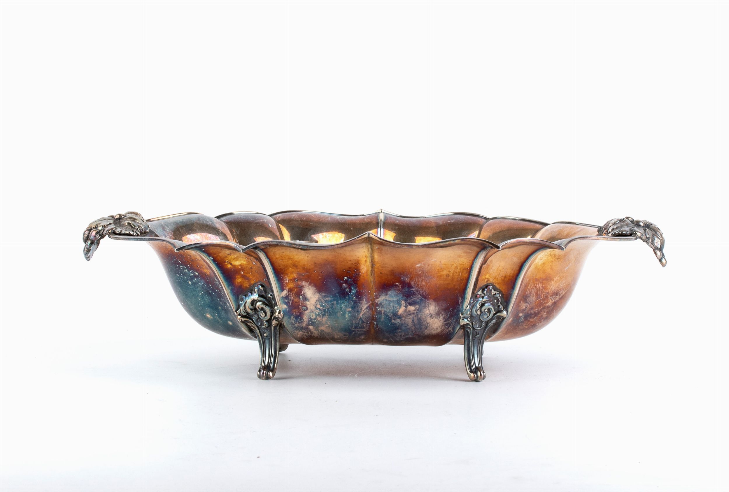 Metà XX secolo di forma ovale sagomata con manici con decorazioni di viti. Piedini a motivi fogliati. Testato con acido e pietra di paragone è garantito per essere argento.