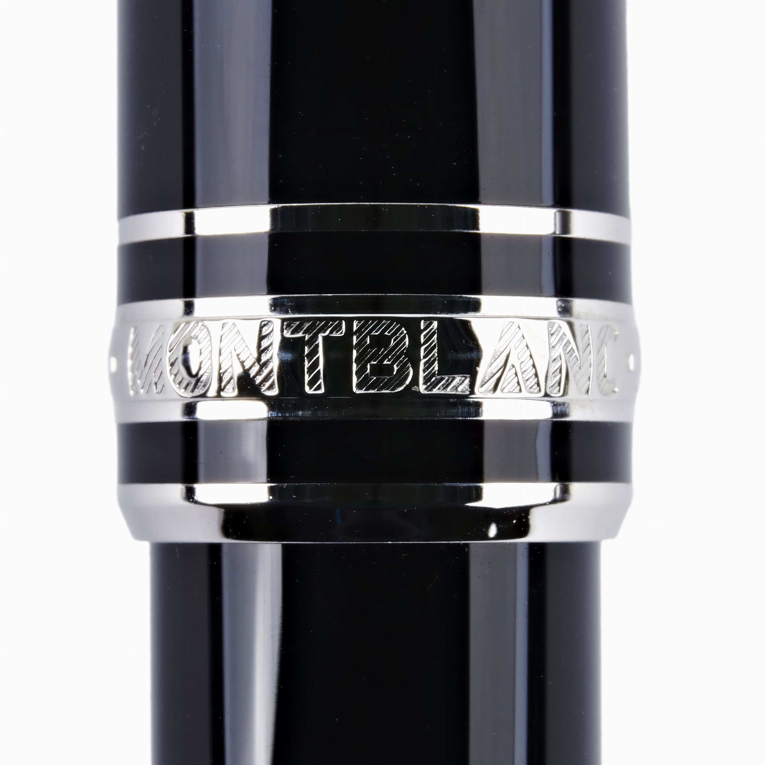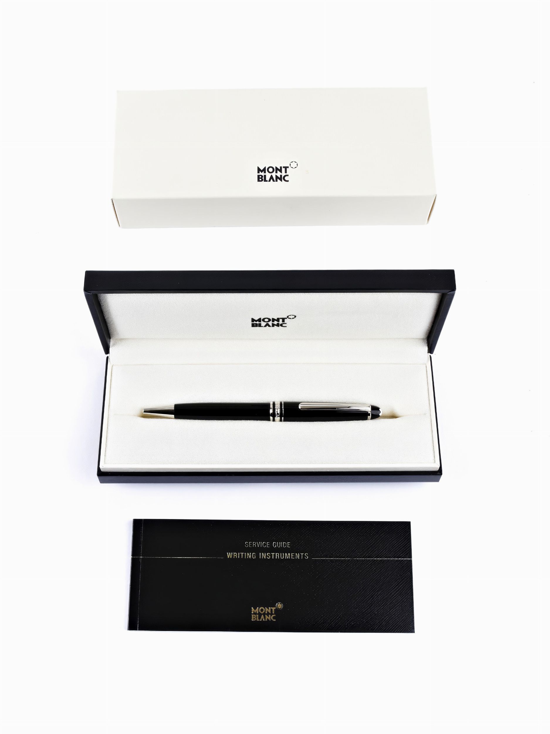 corpo in pregiata resina nera, stella bianca Montblanc intarsiata, finiture e clip in acciaio cromato. Accompagnata da scatola, controscatola e documenti Montblanc. Lunghezza: 13,7 cm. Peso: 23,4 gr.