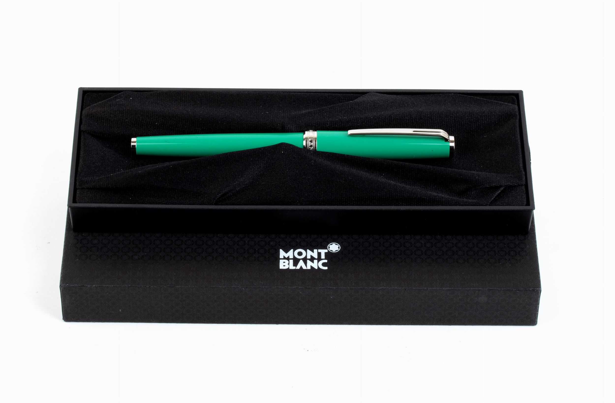 Corpo in resina verde, stella bianca Montblanc intarsiata. Scatola e controscatola Montblanc. Lunghezza 14 cm . Peso 22,6 gr.