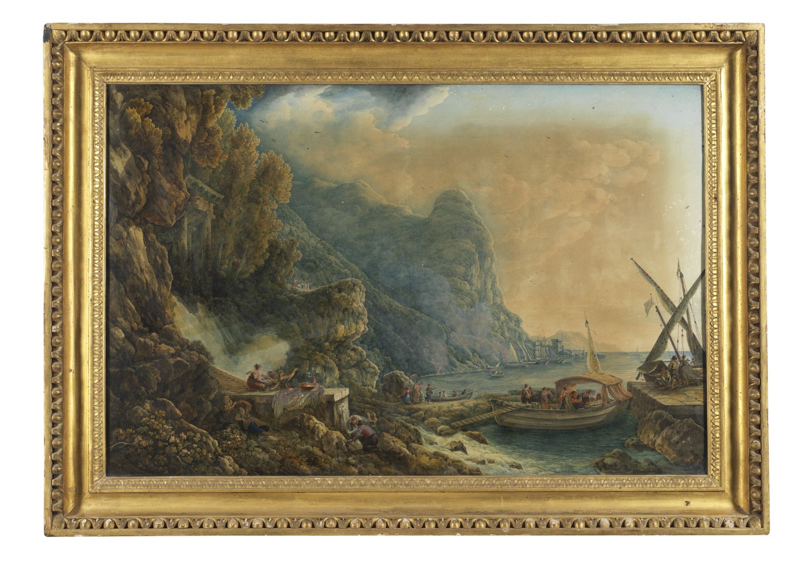 Attribuito a. Veduta della costa presso Pozzano con la torre di Portocarello sullo [..]