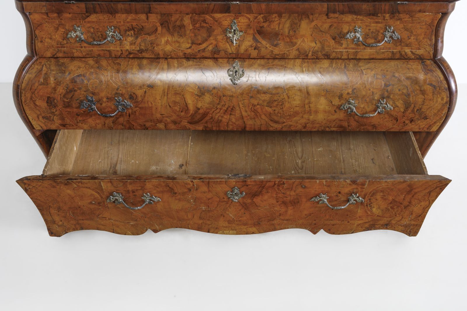 Ribalta 'ad urna' lastronata in noce e radica di noce con fronte e fianchi bombati, [..]