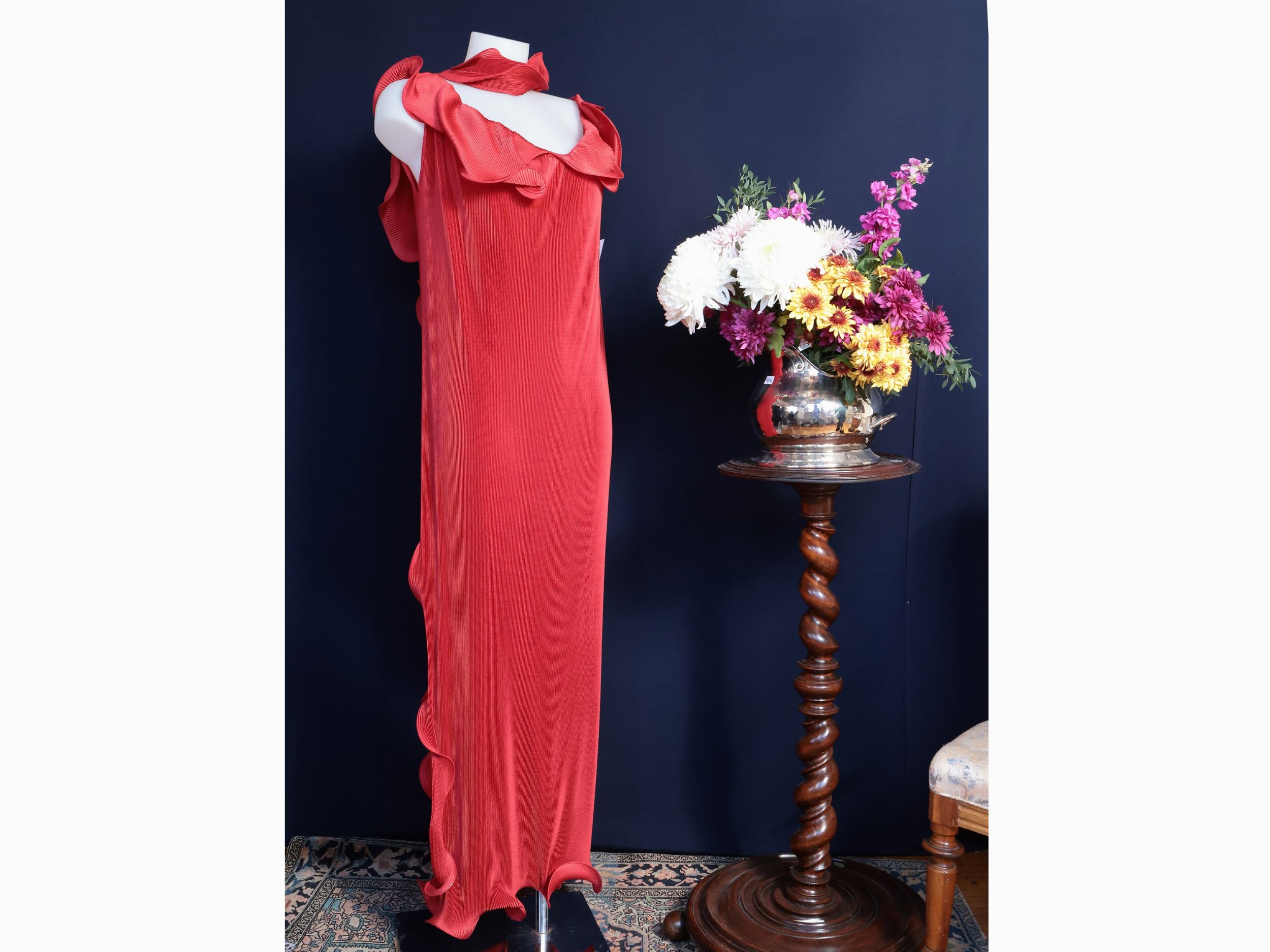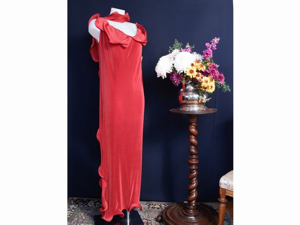 Abito lungo rosso plissettato
