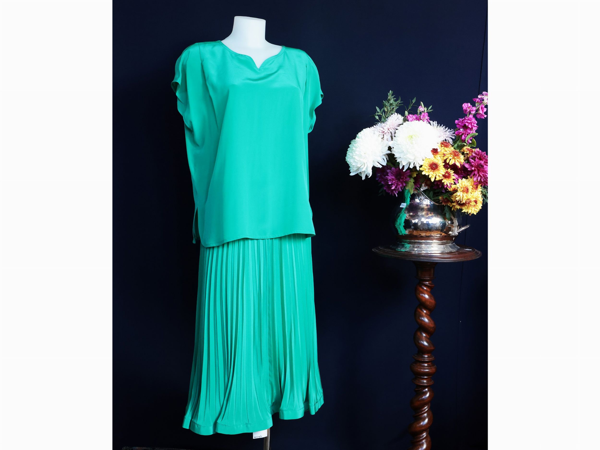 Completo in seta verde smeraldo