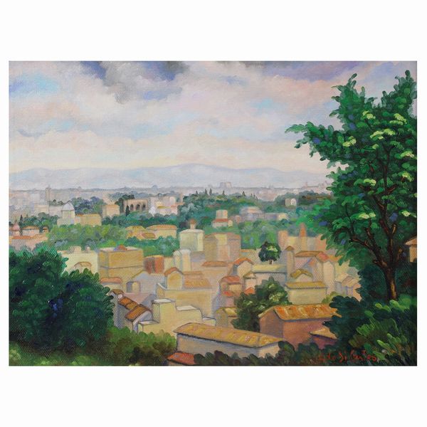 Roma 1932 - Velletri 2004 'Roma', olio su tela, firmato in basso a destra, entro cornice