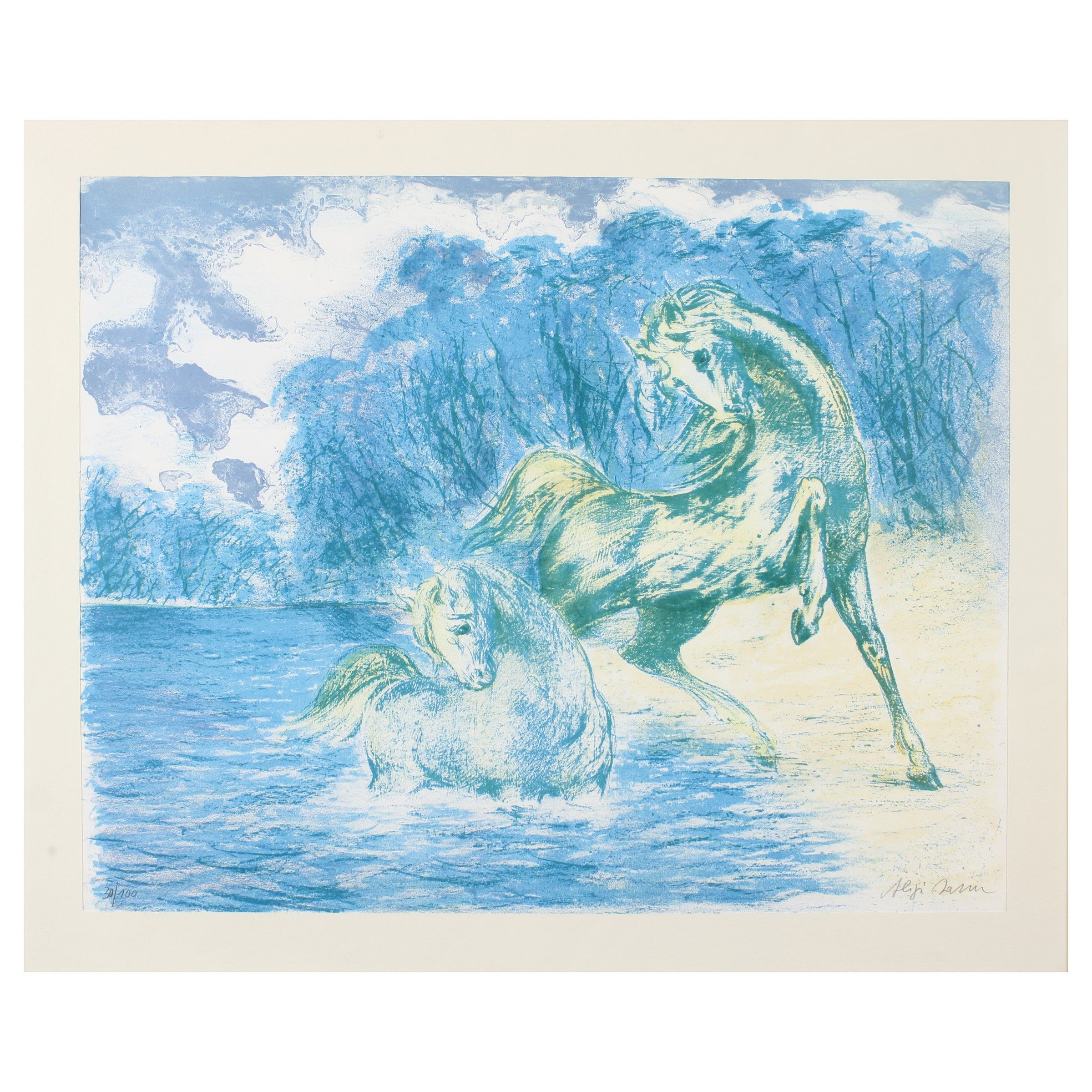 Milano 1912 - Pollensa 2000 'Cavalli', litografia es. 30/100, firmata in basso a destra, entro cornice