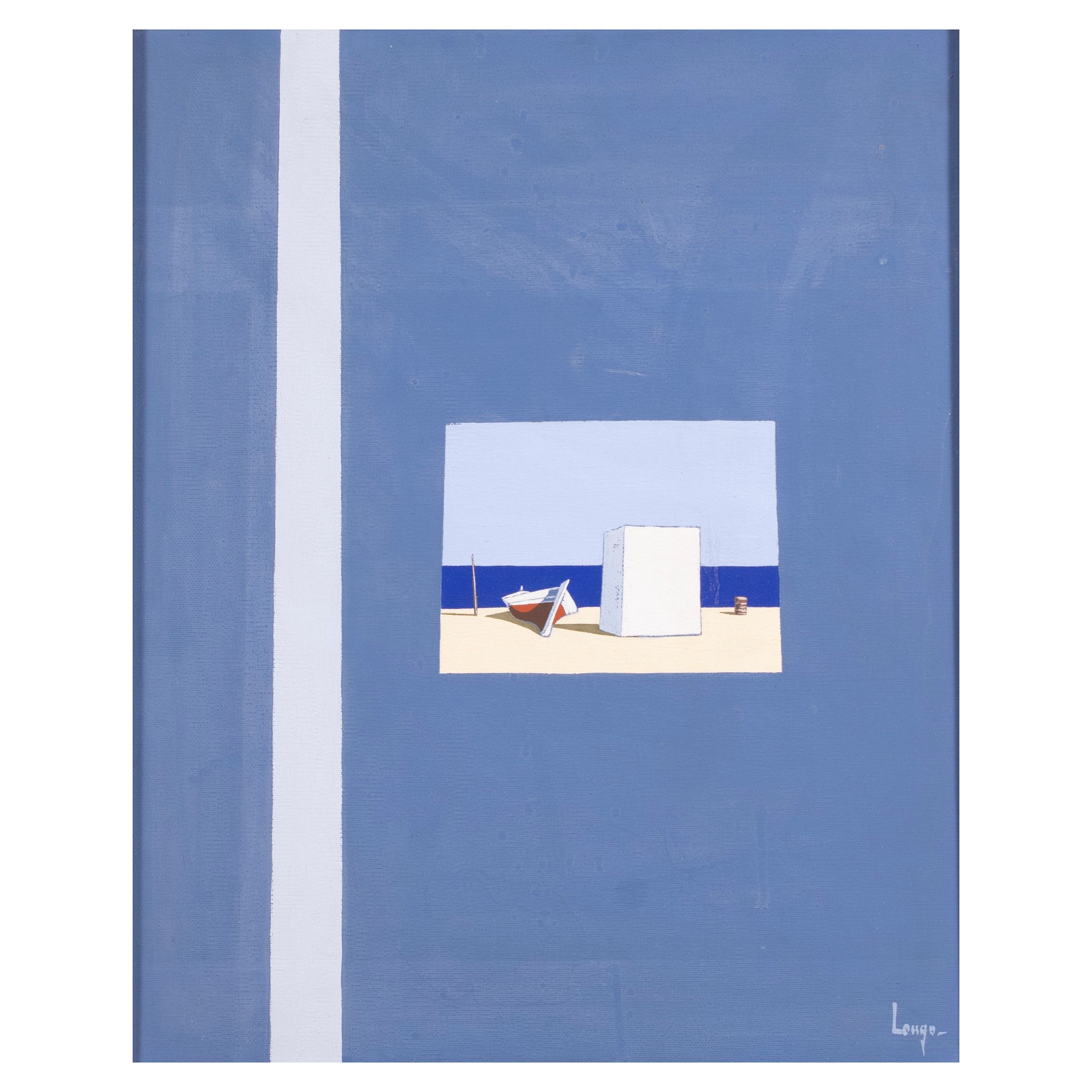 San Cesario di Lecce 1943 'Spiaggia con barca', acrilico su tela, firmato in basso a destra, entro cornice