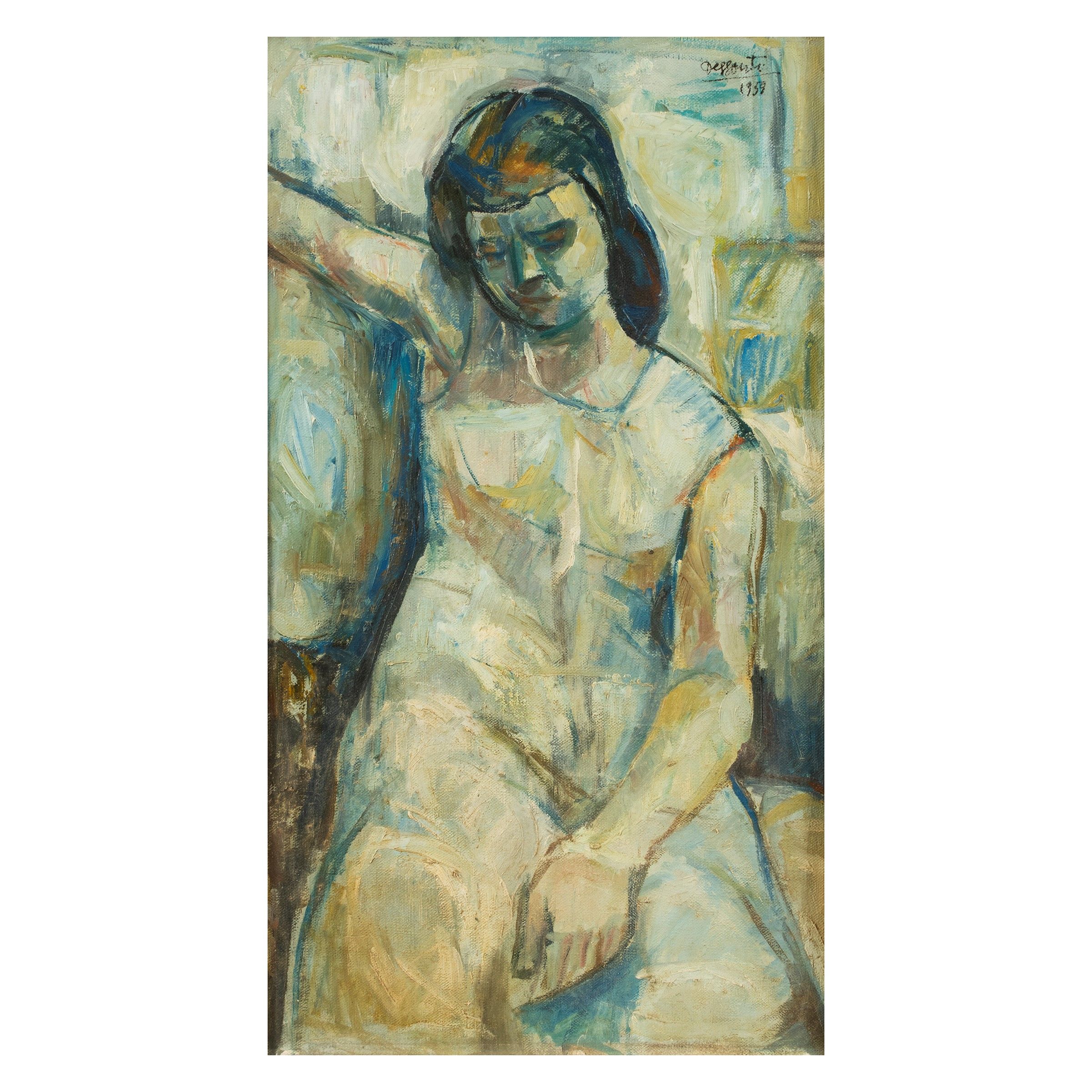Rovigno 1926 - 1975 'Ritratto femminile', 1959, olio su tela, firmato e datato in alto a destra, entro cornice
