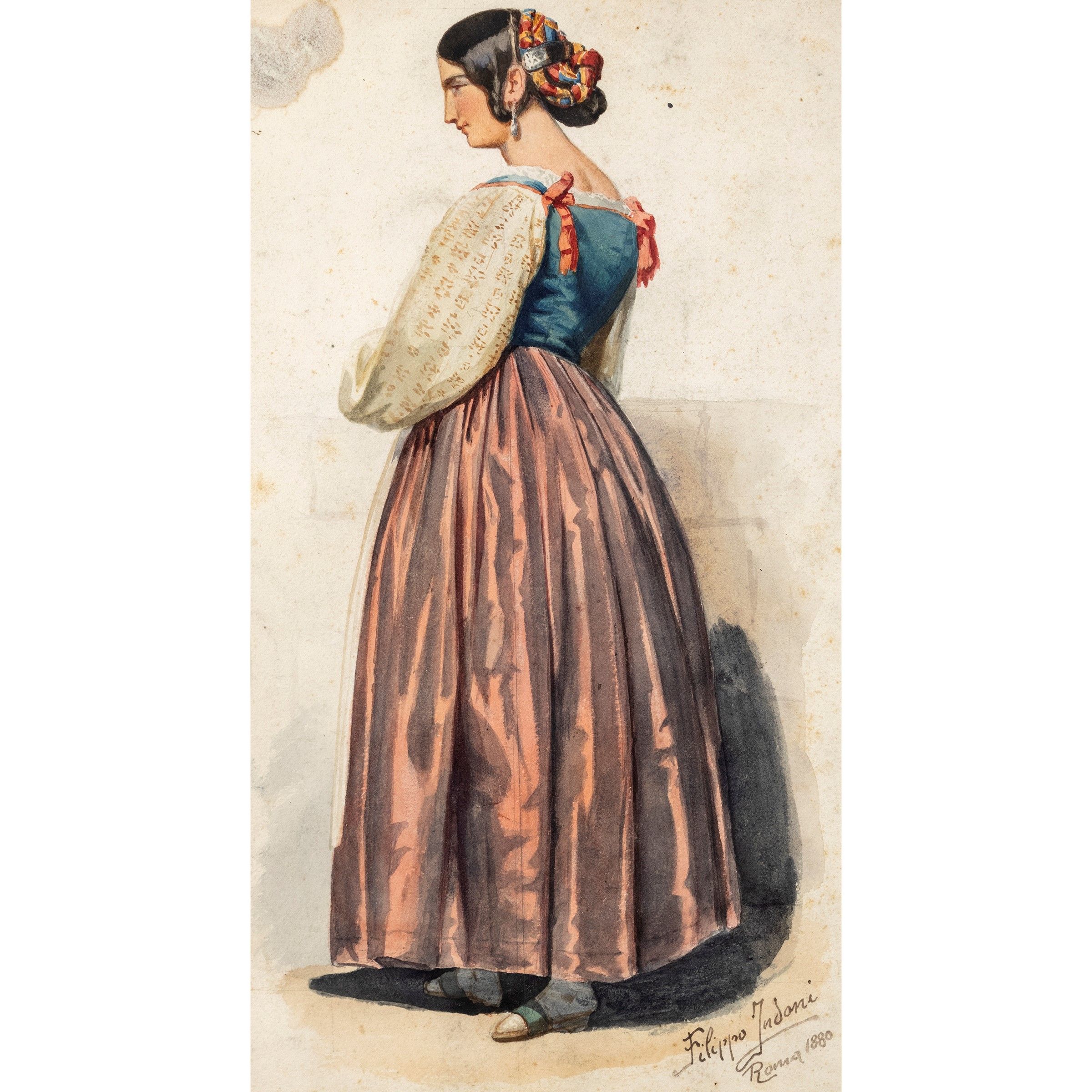 Roma 1842 - 1908 'Figura femminile', 1880, acquerello su carta, firmato e datato in basso a destra, entro cornice